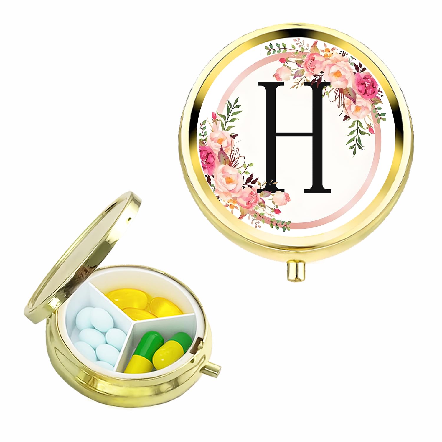 Small Pill Box for Purse Pocket, Personalized Small Pill Case 3 Compartment, Monogrammed Cute Pill Organizer, Gift for Women Teen Girls, Travel Mini Jewelry Box,Earring Holder Organizer