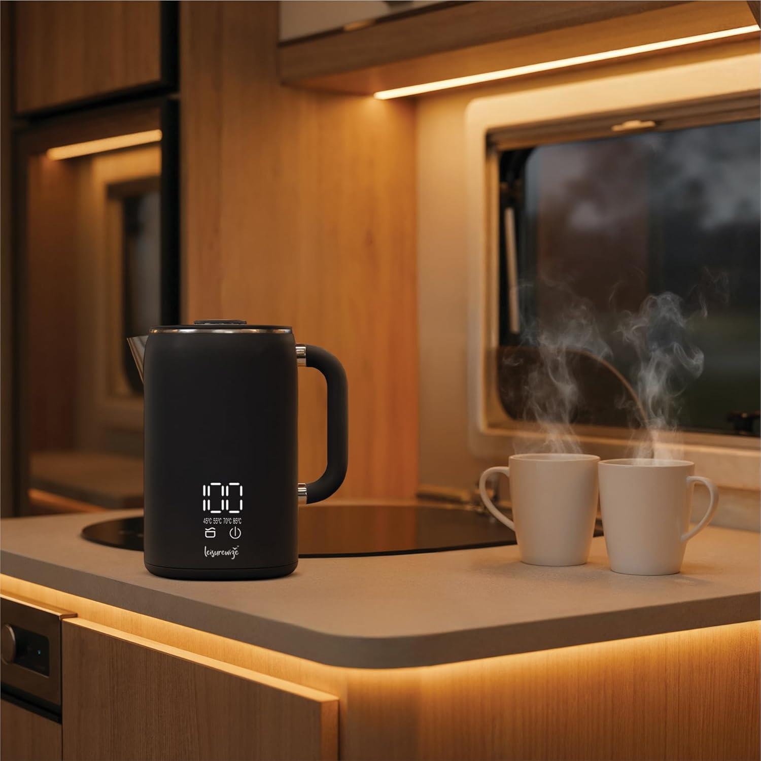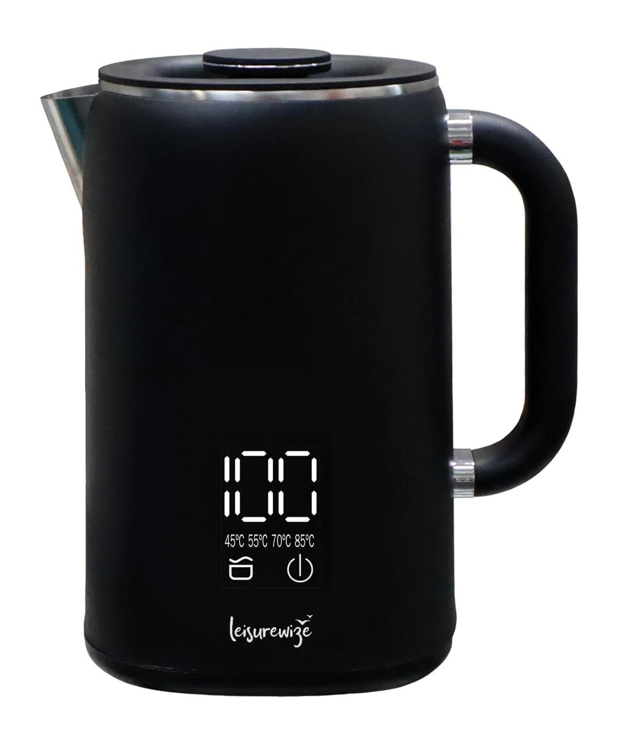 Leisurewize Electric Kettle Black 1.7L Stainless Steel Low Watt LED Display LW76 |