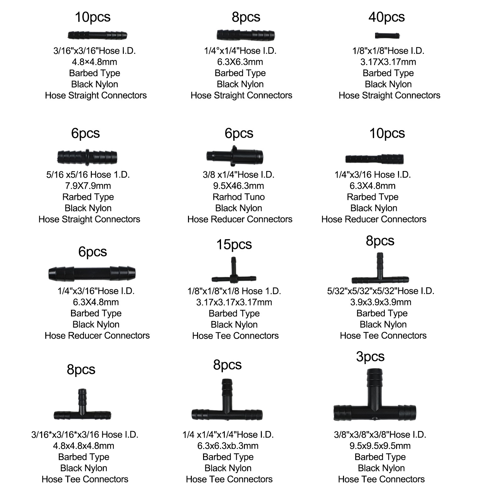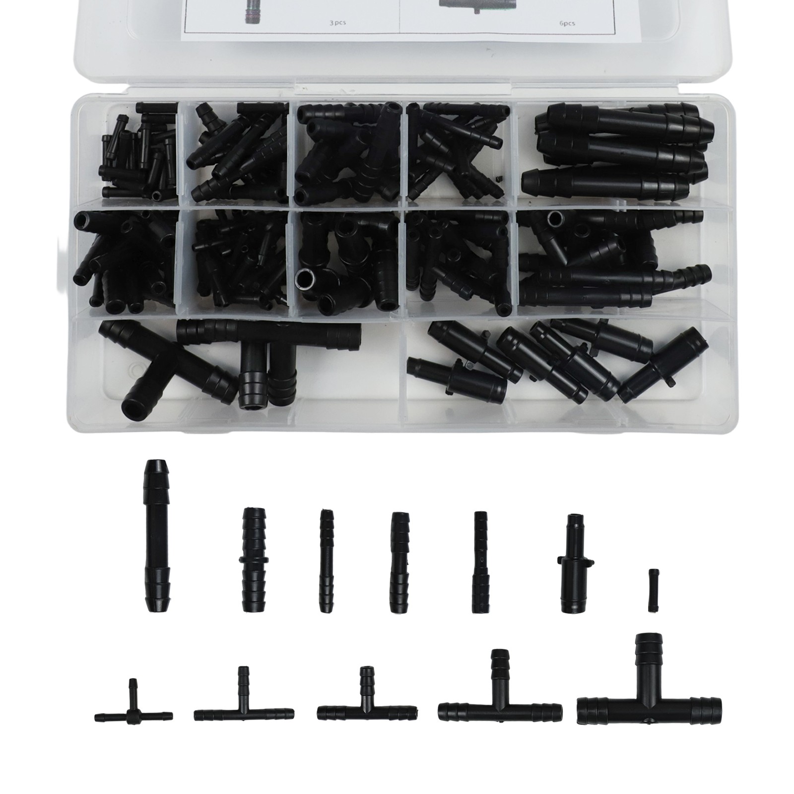 * Nom du produit : ensemble de réducteurs d'assortiment de connecteurs de tuyaux de voiture 128 pièces connecteur droit en T