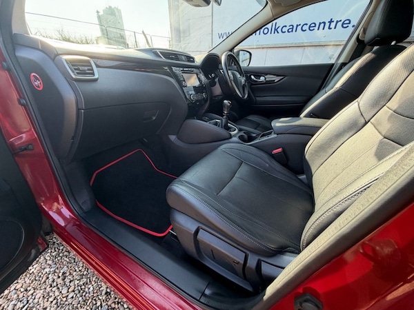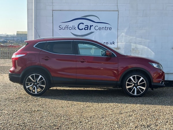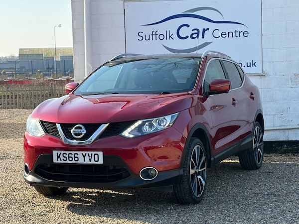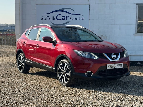 NISSAN QASHQAI 1.6 dCi Tekna SUV 5dr Diesel Manual 4WD Euro 6 (s/s) (130 ps) Service History and 12 Months MOT 6 Months Blue Chip Warranty Road Side Assistance (Optional) Located at Lowestoft.19in Alloy Wheels, Automatic Lights and Wipers, Dual Zone Climate Control, Panaramic Glass Roof with Shade, Satellite Navigation, 19in Alloy Wheels - 5-Spoke, 3 x 3-Point Rear Seatbelts with ELR, 5in High Definition Full Colour TFT Screen Combimeter, 6 Speakers, 60-40 Split Rear Folding Seats, AUX Socket for MP3 Player, Alarm, Automatic Folding Door Mirrors, Automatic Lights and Wipers, Black Honeycomb Front Grille, Bluetooth, Body-coloured Bumpers - Handles and Mirrors, CD Radio, Chrome Glass Surround, Cruise Control with Speed Limiter, Drive Computer, Driver Seat Height Adjustment, Driver-Passenger-Side and Curtain Airbags, Drivers Side One-touch and Anti-trap Window, Dual Zone Climate Control Air Conditioning, ESP ABS EBD and Brake Assist, Electric Speed-Sensitive Power Steering, Executive Pack, Front Centre Console and Armrest, Front Fog Lamps with Chrome Ring, Front Seat Belt Height Adjustment, Front Seat Belts with Load Limiter and Pretensioners, Front and Rear Electric Windows, Head Restraints - 3 Rear, Headlights - Automatic Levelling, Headlights - Bi-LED, Heat Pack, Height Adjustable Front Head Restraints, Hill Start Assist, ISOFIX Child Seat Anchoring Points, Immobiliser, Intelligent Key, Intelligent Park Assist, Interior Ambient Lighting, LED Signature Daytime Running Lights, Leather Gear Knob, Leather Steering Wheel, Luggage Board System, Nissan Chassis Controls, Puncture Repair Kit, Push Start-Stop Button, Rear Door Child Locks, Rear Privacy Glass, Rear Seat Armrest with 2 Cupholders, Remote Audio Control, Roof Rails - Satin Silver, Safety Shield, Seats - Drivers Lumbar Support, Seats - Passengers Height Adjustment, Selectable Steering - Normal or Sport, Smart Vision Pack, TPMS - Tyre Pressure Monitoring System, Tech Pack, Tilt and Telescopic Adjustable Steering Wheel, e-PKB - Electric Parking Brake