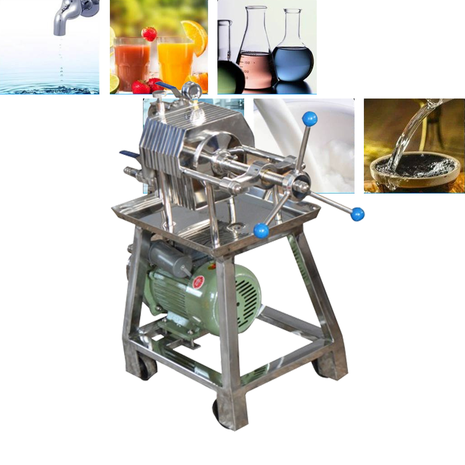 Stainless steel sandwich plate frame filter, apply to concentration below 50% viscosity is low, less fluid slag content as airtight filtering to achieve purification, sterilization, clarification etc fine filtration, half fine filtration requirements, microporous membrane filter for use directly, not through the microporous membrane filter can achieve aseptic filtration purpose).