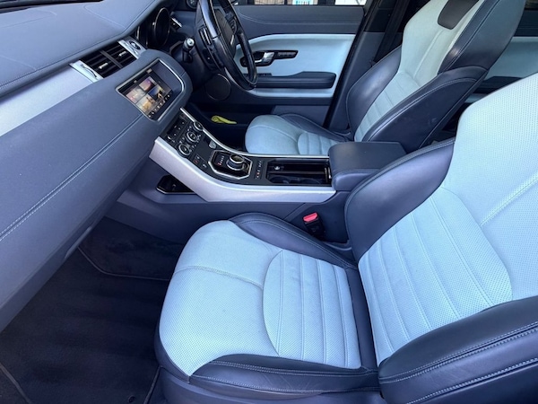 The 2016 Land Rover Range Rover Evoque 2.0 TD4 HSE Dynamic LUX Auto is a high-specification compact luxury SUV featuring the efficient 180hp Ingenium diesel engine and a 9-speed automatic transmission. This "LUX" variant represents the pinnacle of the 2016 facelifted lineup, combining distinctive "Dynamic" styling with a comprehensive suite of premium technology and comfort features. The LUX pack adds high-end amenities that were often optional on lower trims, making it a "huge spec" vehicle. Technology: 10.2-inch InControl Touch Pro high-resolution touchscreen, HDD Navigation, and a premium 825W Meridian Surround Sound System with 16 speakers. Luxury Comfort: 12-way or 14-way electric memory seats. Windsor or Oxford leather, heated front seats, and a fixed panoramic glass roof with an electric blind. Convenience: 360-degree Surround Camera System, Park Assist (parallel and perpendicular), and a hands-free gesture tailgate. Safety: Lane Departure Warning, Blind Spot Monitoring with Closing Vehicle Sensing, and Autonomous Emergency Braking. One Owner from new with a great Service History, finished in Baltoro Iced Blue with two Tone Lunar / Grey Leather interior which just looks fantastic. We are also a Supagard Dealer so for the special price of just £199 you can protect your investment - Exterior: The tough, high gloss barrier bonds to the paintwork, seals the surface against harmful UV rays, acid rain and atmospheric pollution. Interior: The upholstery & carpet are coated with a resin based formula which eases the removal of dirt and spills. This prevents staining while preserving the texture and appearance of the material. We have a wonderful range of vehicles for you to see; every car on our Website has a minimum of 30 images - see more at Control, DAB / BT Media, 20" Gloss Black Alloy Wheels, 9 Speed Auto with Paddle Shift, Towbar , Perforated Oxford Leather with Sport Styling - Lunar-Ice, Baltoro Ice, Black Contrast Roof with Matching Spoiler, Privacy Glass, Black Pack, 10.2in High Resolution Touch Screen, 12-12 Way - Electric Memory Seats, 12V Auxiliary Power Sockets - Front and Luggage Compartment, 20in Alloy Wheels - 5 Split Spoke Style 504 - Sparkle Silver Finish, 5in TFT Driver Information Centre, ABS - Anti Lock Braking System, Airbags - Driver Knee, Airbags - Front - Driver and Front Passenger, Airbags - Side Curtain - Driver and Front Passenger and Row Two, Auto-Dimming Interior Mirror, Auxiliary Power Socket - Front and Luggage Compartment, Bluetooth Telephone Connectivity with Streamed Audio, Body Coloured Door Handles, Body Coloured Roof with Matching Spoiler, Body-coloured Door Claddings, Bright Pedals, CD-DVD Player, Cabin Air Quality Sensor, Carpet Mats with Edging, Centre console - Covered Storage Compartment, Climate Control - Automatic with Air Filtration and Automatic Recirculation, Climate Control - Rear Vents, Customer Configurable Interior Mood Lighting, DAB - Digital Audio Broadcast, DSC - Dynamic Stability Control, Door Mirrors - Narvik Black, Dynamic Body Style, Dynamic Front and Rear Bumper, EBA - Emergency Brake Assist, EBD - Electronic Brake-Force Distribution, EDC - Engine Drag Torque Control, EPAS - Electronic Power Assisted Steering, Electric Parking Brake, Engine Badge - HSE, Evoque Badge in Red, Exhaust Finishers - Bright Square, Exterior Mirrors - Electric Adjustment-Heated-Power Fold-Puddle Lamps with Projected Evoque Graphic-Direction Indicators-Memory Function with Auto Dipping in Reverse Gear, Front Fog Lights, Front Height-adjustable Seat Belts, Front and Rear Parking Aid, Global Opening for all Windows, Grille Surround - Corris Grey, HDC - Hill Descent Control, HSA - Hill Start Assist, Hazard Warning Lights Under Heavy Braking, Headlight Power Wash, Headlights - Automatic High Beam Assist, Headlights - Xenon with Automatic Levelling and LED Signature Lights, Heated Front Seats, Heated Rear Screen, ISOFIX Mounting Points in Outboard Rear Seats, Illuminated Range Rover Treadplates, Illumination - White Ambient Lighting, Illumination - White Lighting, Illumination for Footwell-Glovebox-Load Compartment Lamp x1, InControl Protect, InControl Touch Pro Navigation, Keyless Entry, LUX Pack, Lane Departure Warning with Autonomous Emergency Brakin