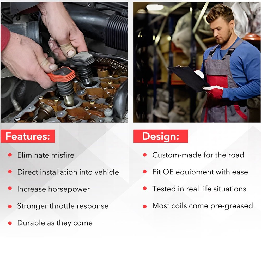- 【High performance Energy Coil】 Upgrade 20% more energy than OE coils and improve engine performance. These direct plug-and-play coils provide greater discharge energy over factory ignition coils for a stronger and more consistent spark.