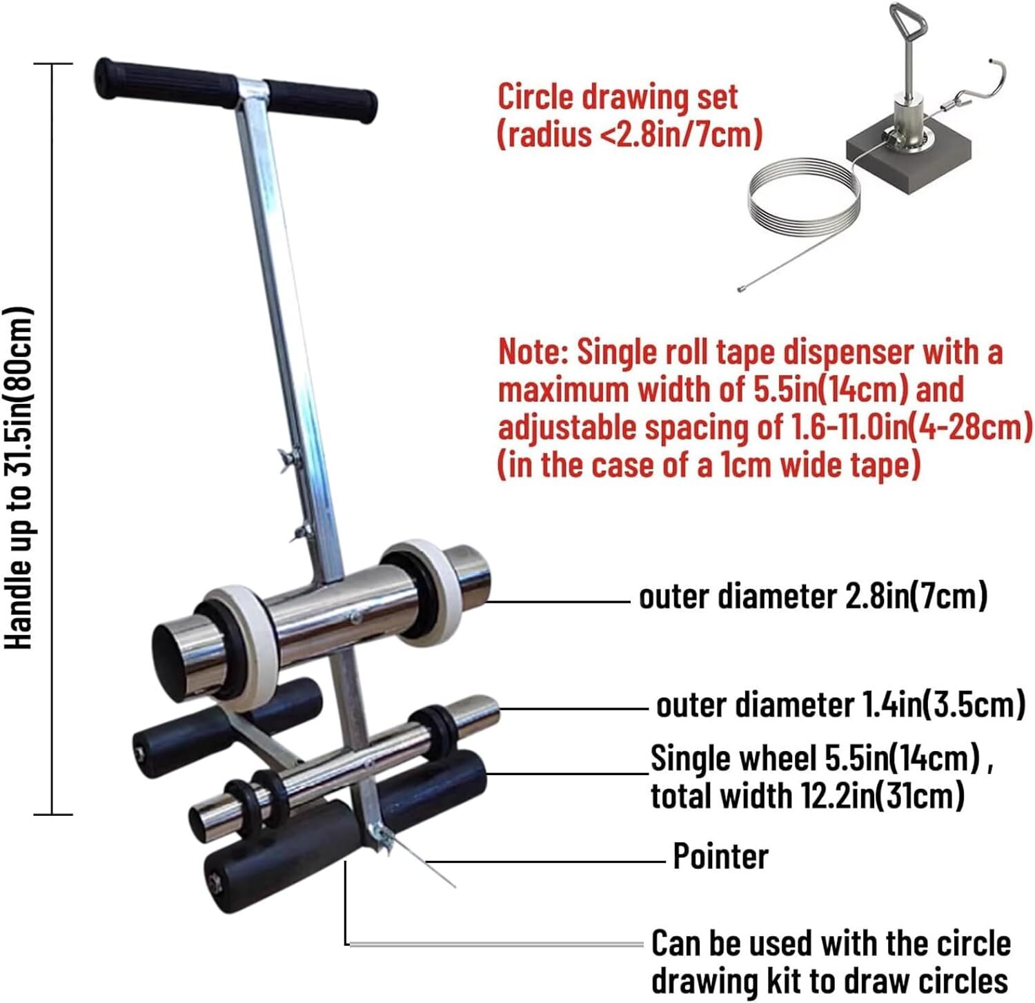 Supports tape widths up to 8cm