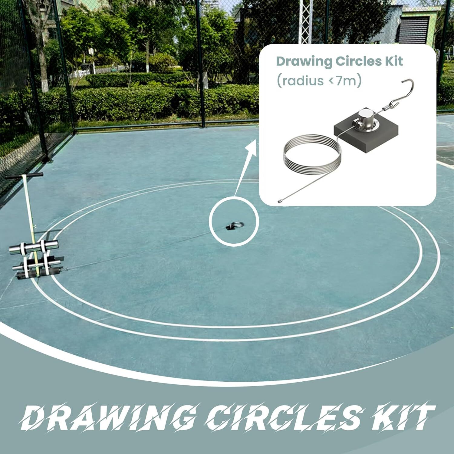 Telescopic handle adjusts to desired circle size