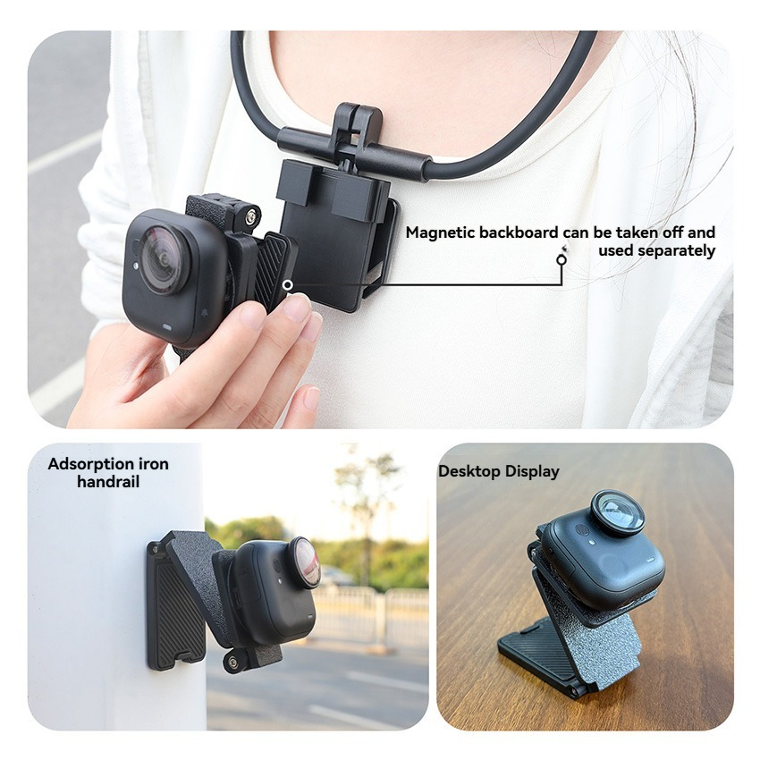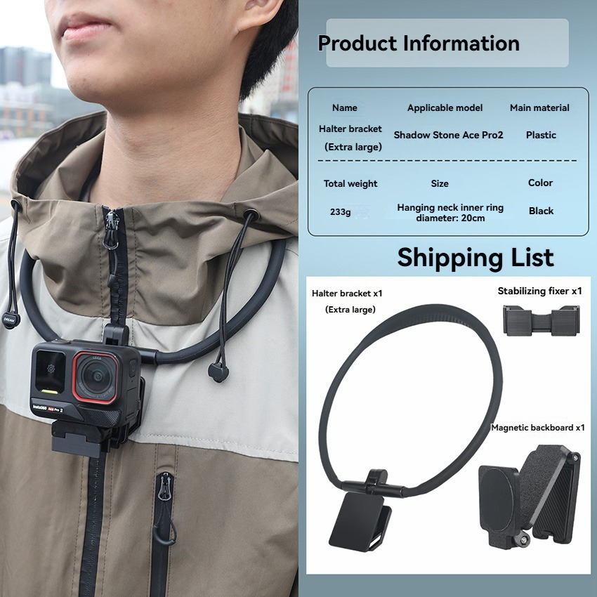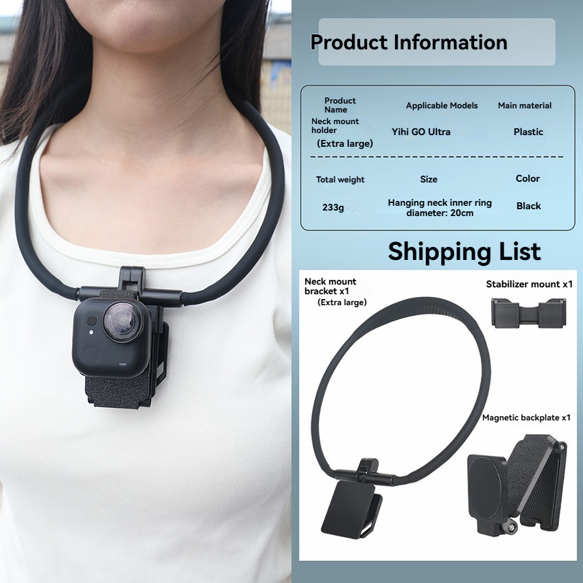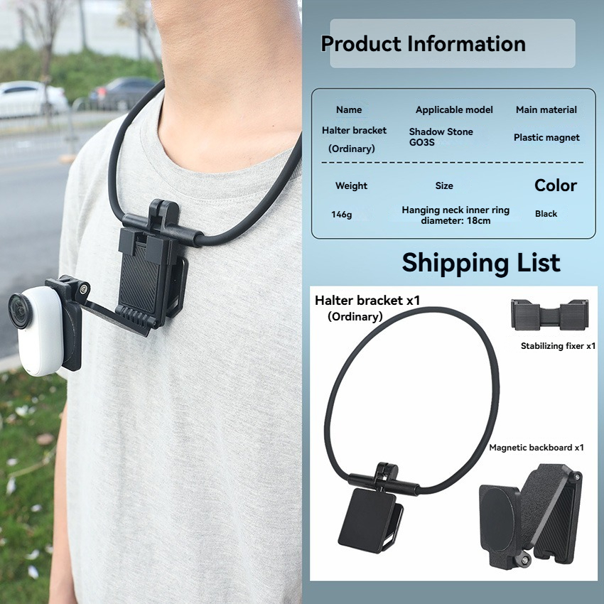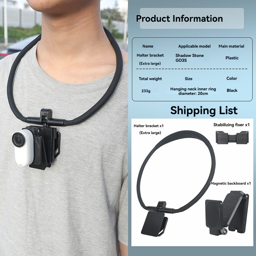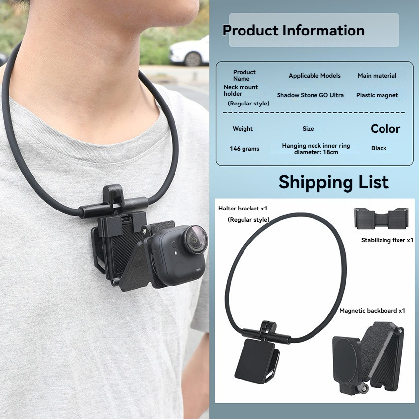 Magnetic Neck Strap Mount for Action Camera with Magnetic Quick-Release Accessories for Insta360 GO Ultra/GO3S/Acepro2 Features: l Swiftly rotate and switch between horizontal and vertical modes. Multiple adjustable angles meet all your daily shooting needs l First-person immersive shooting made super simple! Magnetic back-plate secures your device instantly, with a comfortable neck strap for a snug fit l Seamlessly switch perspectives as the view follows your angle, capturing every moment with authentic realism l Freely bend and fold for easy storage. Stainless steel neck tube allows custom styling, fits neatly in your pocket l No limits to your scenes—shoot wherever you please with magnetic adhesion Specifications: l Material: Plastics l Size: As Shown l Quantity: 1 PCS l Applicable Model: for Insta360 GO Ultra/GO3S/Acepro2 l Types (Optional): GO ultra Magnetic Neck Strap (Heavy-Duty Version) l GO ultra Magnetic Neck Strap (Standard Version) l GO3S Magnetic Neck Strap (Heavy-Duty Version) l GO3S Magnetic Neck Strap (Standard Version) l Acepro2 Magnetic Neck Strap (Heavy-Duty Version) l Acepro2 Magnetic Neck Strap (Standard Version) Package: l 1x Neck Strap Mount Note: l Only the above package content, does not include other accessories.