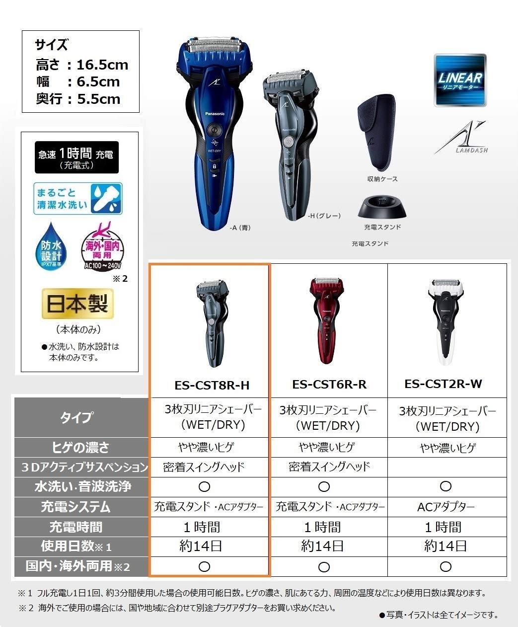 Panasonic ES-CST8R-H LAMDASH Men's Shaver 3 Blades Gray 100V-240V