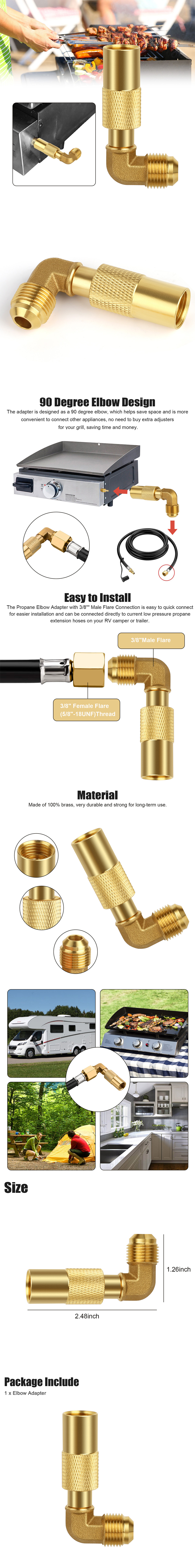 Easy to Install: The Propane Elbow Adapter with 3/8" Male Flare Connection is easy to quick connect for easier installation and can be connected directly to current low pressure propane extension hoses on your RV camper or trailer.