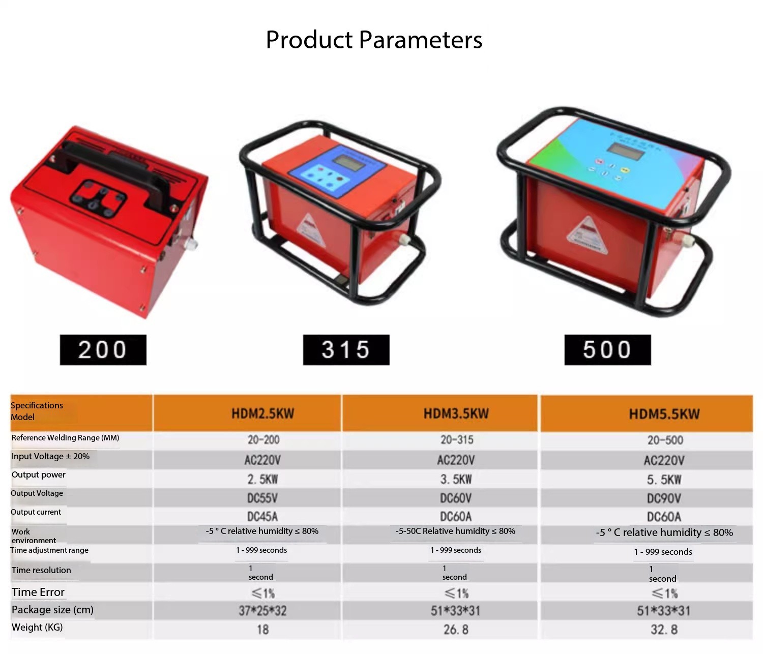Wide Welding Range: Covers pipe diameters from 20mm to 315mm (3.5KW model)