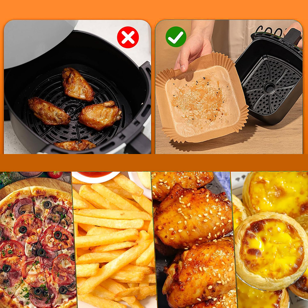 2. [Keep the air fryer clean] The dispos..able paper lining of the air fryer keeps the fryer as clean as before use, preventing food residue and greasy stains from remaining on the cooker. Extend fryer life and reduce cleaning time. If you hate cleaning after baking, these paper linings are a must