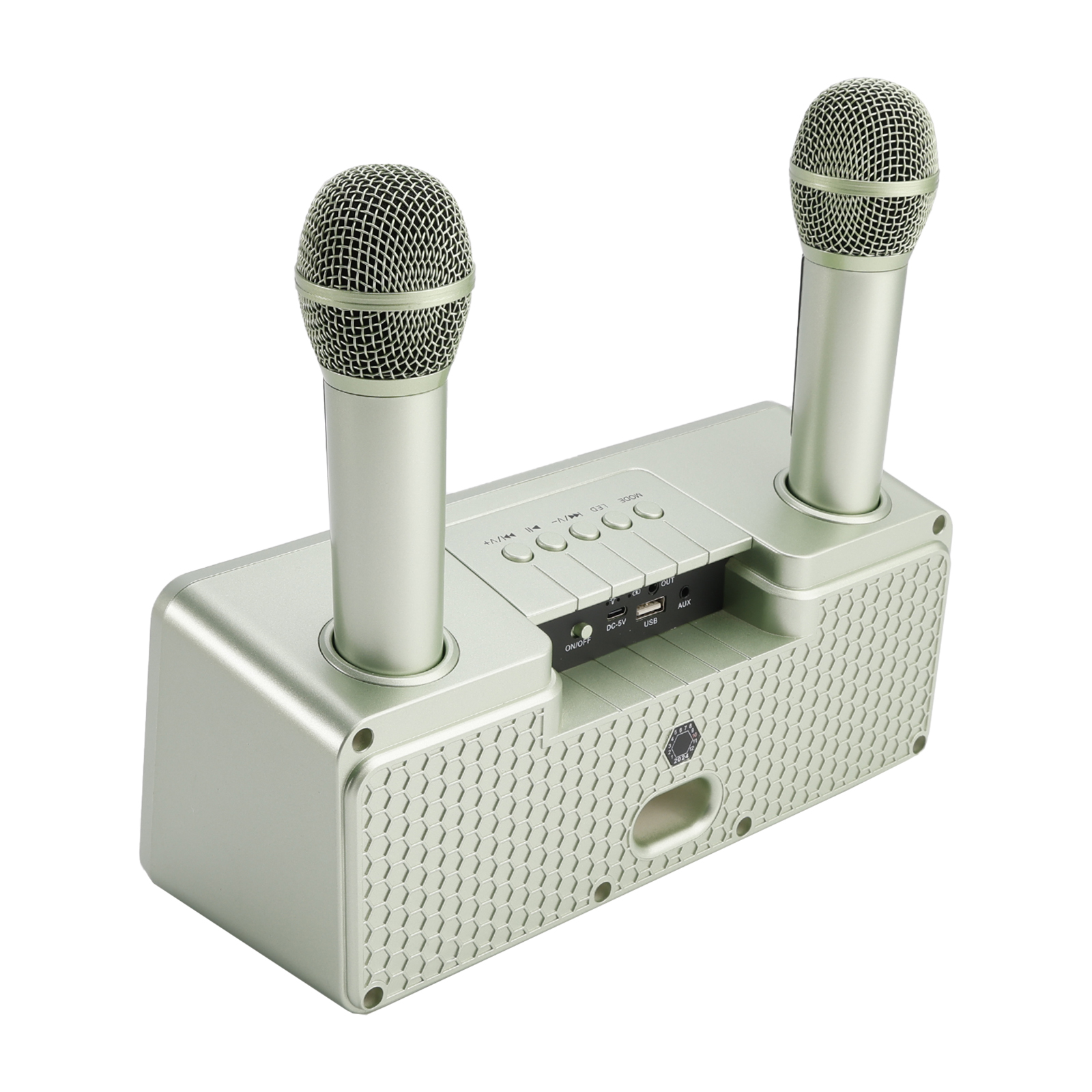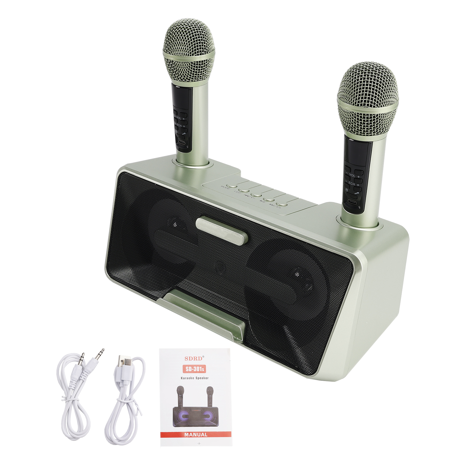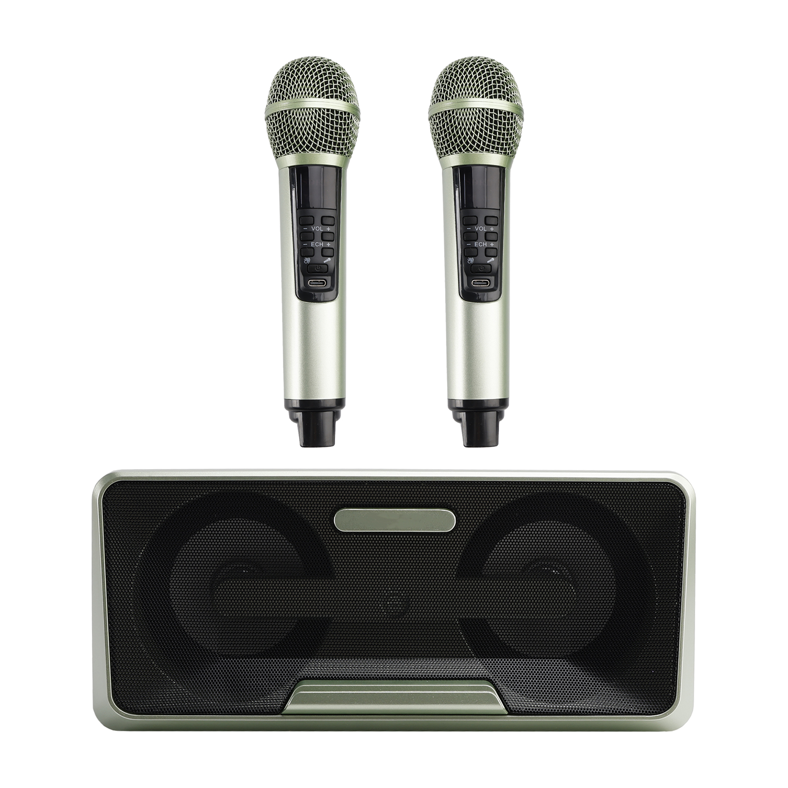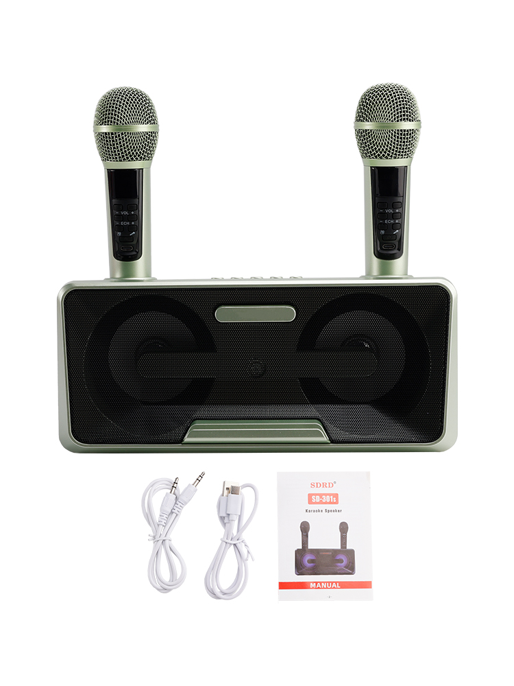 Design concept: details that transform meaning into form, innate streamlined style. Dual microphone design, no need to worry about microphone tyrants grabbing the microphone, so you can sing whenever you want. Dual microphone wireless karaoke, wireless Bluetooth smart connection, high battery life, HIFL sound effect.