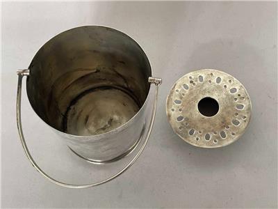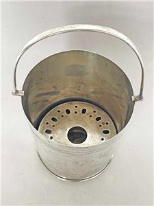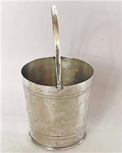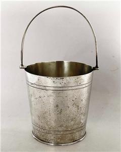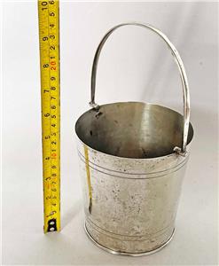 The ice bucket measures approx 5 inches (130mm) tall (to the rim), by 4 3/4 inches (120mm) in diameter, and is made silver plate.
