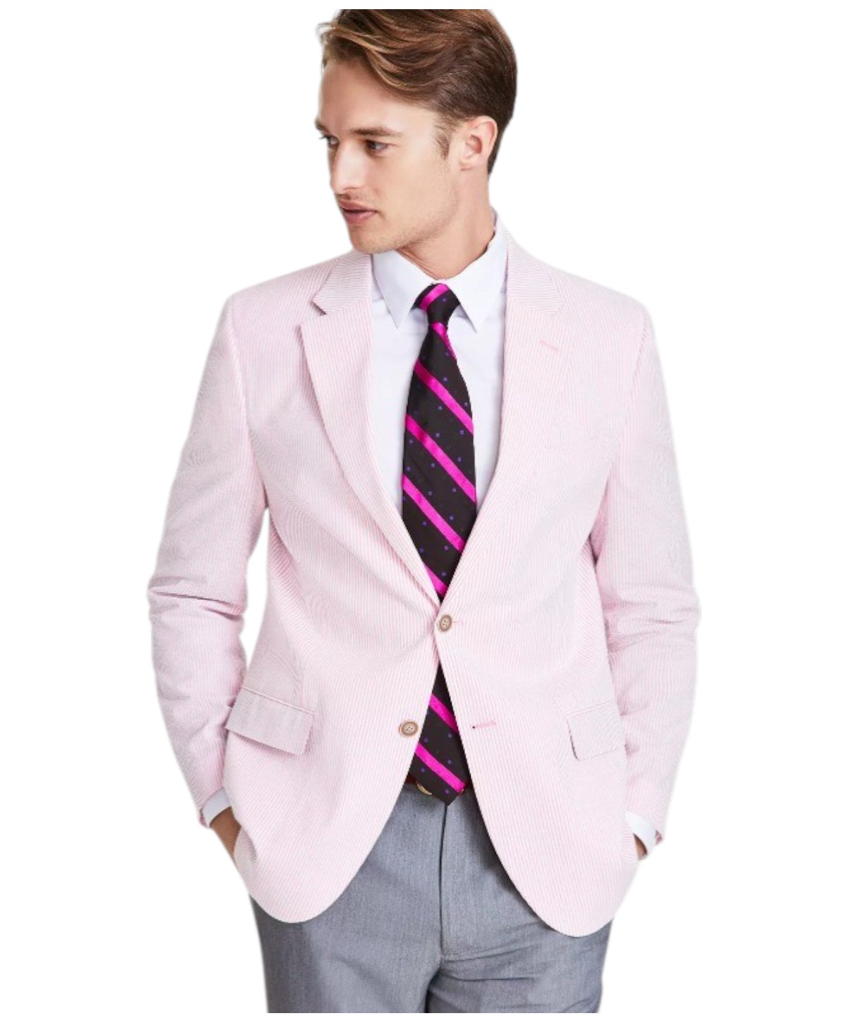 Nautica Mens Classic fit Sport Coat Blazer 40 L Pink Striped Stretch