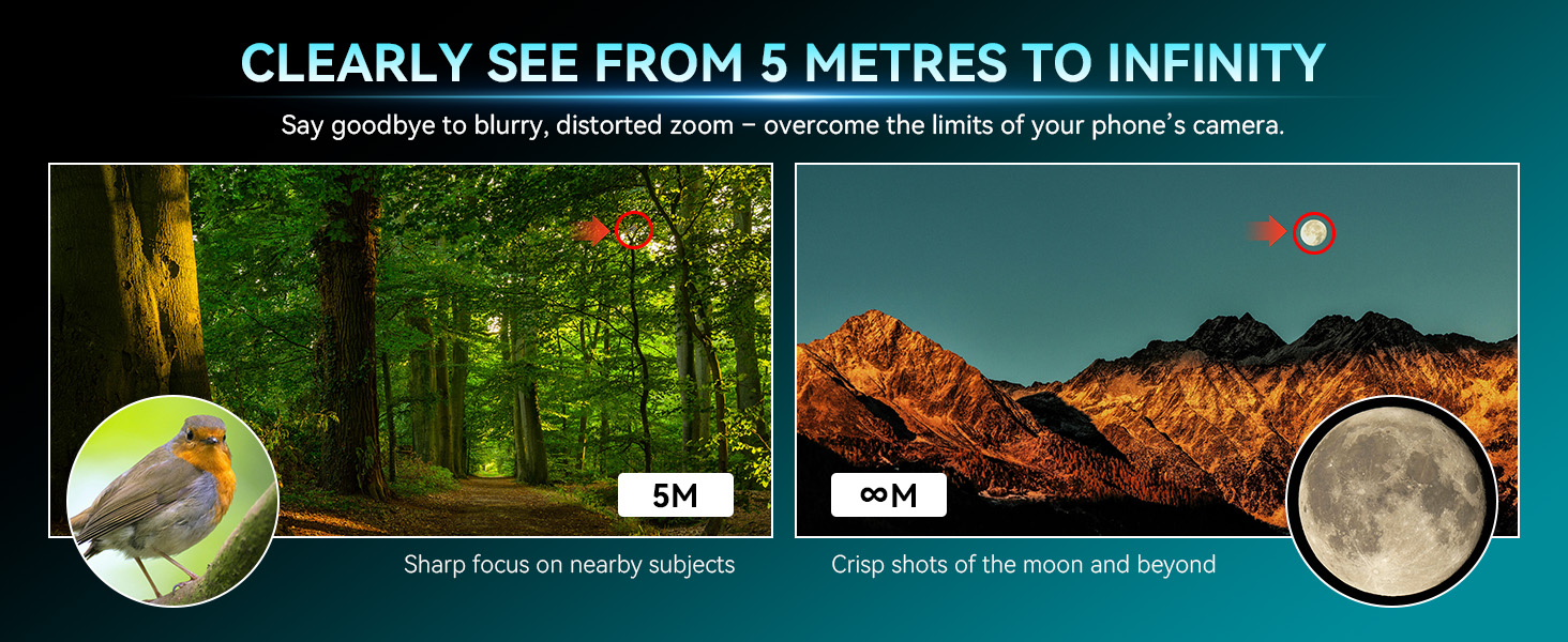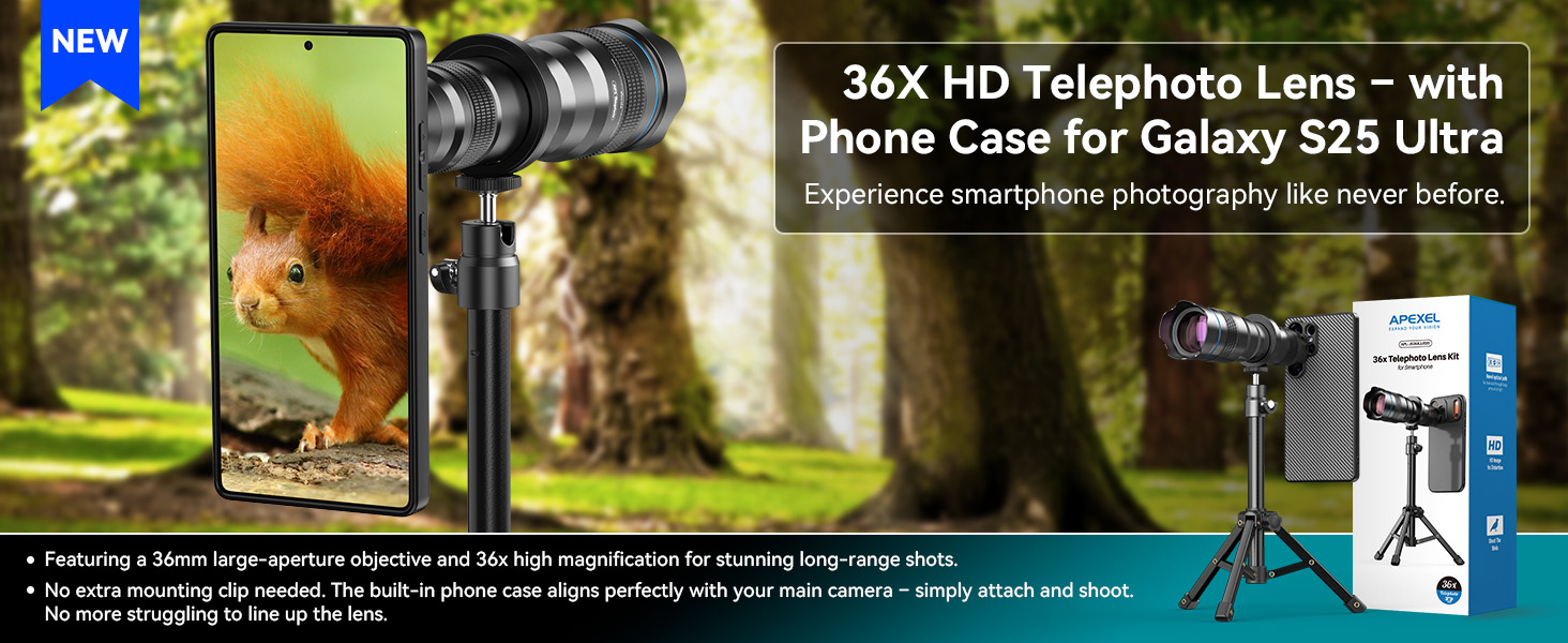 【36X HD Magnification】Our powerful telephoto lens for iPhone and Android devices offers up to 36x optical magnification. It allows you to photograph subjects from over 1000 meters away, capturing sharper, brighter images with excellent color fidelity and reduced distortion