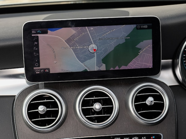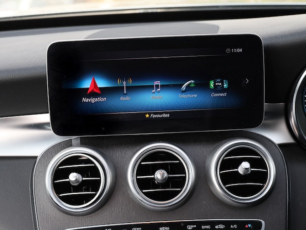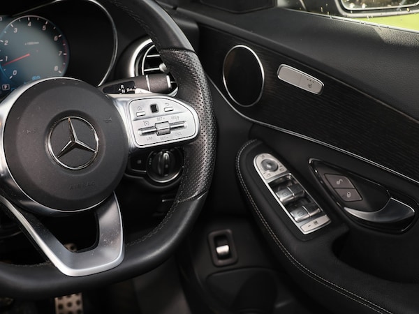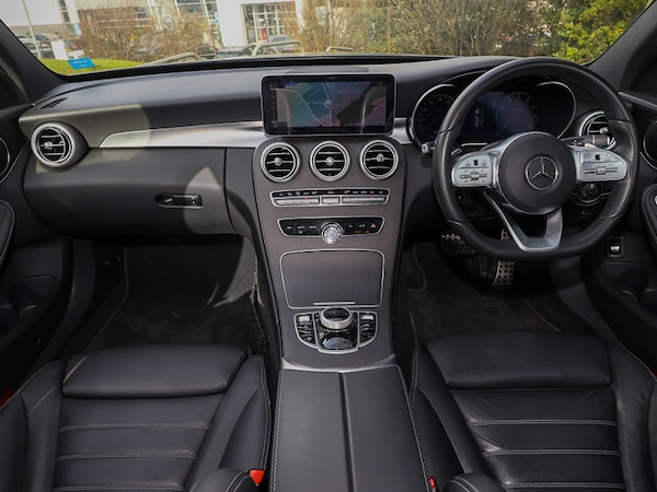 Active park assist with parktronic system, Seat comfort pack - C Class, Remote boot release, Reversing camera, Hill start assist, Heated front seats, AMG sports seats, DYNAMIC SELECT with a choice of driving modes (ECO, Comfort, Sport, Sport+ and Individual), Multi function trip computer, Sports direct steer speed sensitive steering, Heated windscreen washers, Lighting pack - C class, Agility control sports suspension lowered by 15 mm, 9G TRONIC 9 speed automatic transmission, Steering wheel mounted audio controls, Audio 20 with integrated media interface and bluetooth handsfree function, Frontbass loudspeakers, AMG body styling front apron, rear apron and side skirts, Automatically dimming rear view mirror and driver's exterior mirror, 3 spoke flat bottom AMG steering wheel in nappa leather with chrome inserts perforated leather grip, Gearshift paddles on steering wheel, 12.3"" digital instrument cluster display, Leather upholstery, Mirror pack - C Class, Colour display - 10.25"" colour display screen, Central locking with interior switch, automatic locking and crash sensor with emergency opening function, Chrome surround in electric key, Grey oak open pore trim, 18"" AMG 5 twin spoke aero alloy wheels in tremolite grey, Collision prevention assist plus, Multifunction steering wheel, Sports pedals with stainless steel surfaces and rubber studs