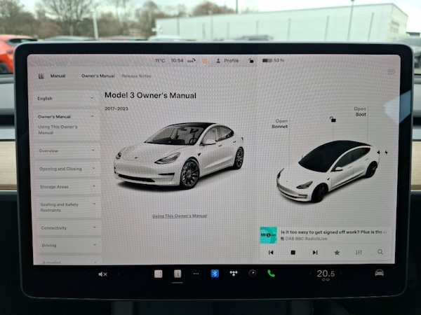 Premium audio with 13 speakers, 1 subwoofer, 2 amps and immersive sound, Traffic sign recognition, Tesla mobile connector + domestic adapter (British 3-pin), Mobile telephone preparation, Heated Rear Seats, Dual motor AWD wheel drive, Heated steering wheel, Lane departure warning system, Rear parking sensor, Steering wheel audio controls, Front parking sensor, Location aware automatic garage door opener, Rear parking sensor, Adaptive cruise control, 11 kW AC onboard charger, DVD System, DAB Digital radio, Tesla mobile app, Auto dimming rear view mirror