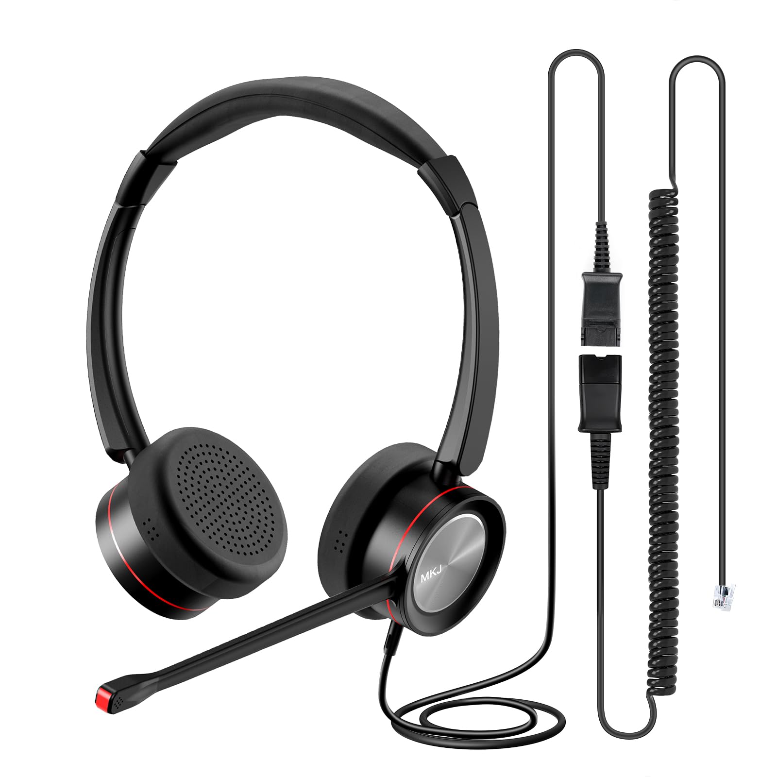 MKJ Telephone Headset with Microphone Noise Canceling, Dual Ear Call Black