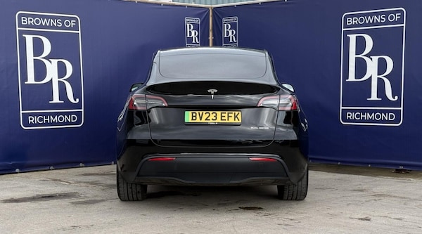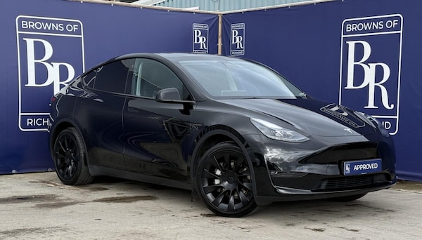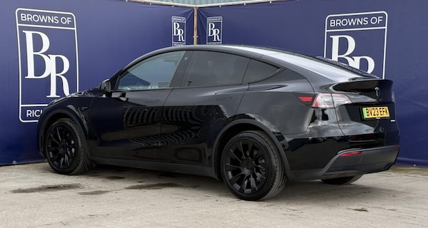 Browns of Richmond proudly presents the Tesla Model Y Long Range AWD – one of the most sought-after electric cars for sale in the UK and an exceptional choice for anyone ready to embrace the future of driving. This Long-Range model features a 75kWh battery and dual motors, delivering outstanding performance with a 0–60mph time of just over 4.5 seconds. Finished in Black and complemented by factory-fitted 20-inch Induction Alloy wheels in original Satin Black, it looks stunning. Inside, enjoy premium vegan leather, heated seats for all passengers and multiple customisable settings. With a real-world range of 250–280 miles and charging costs as low as £5.25 on the right tariff, running costs average around 2p per mile – unbeatable for this level of technology and refinement. Built for efficiency and practicality, the Model Y combines everyday usability with cutting-edge innovation. Tesla's intuitive interface and app connectivity make charging and navigation effortless: simply enter your destination and the car calculates routes, charging stops, and arrival battery levels automatically. This vehicle benefits from Tesla's industry-leading 4-year 50,000-mile Vehicle and 8-year/120,000-mile battery and drivetrain warranty for complete peace of mind. It has also passed our rigorous 114-point inspection, ensuring it meets the highest standards before reaching its next owner. At Browns of Richmond, we're more than a dealership – we're EV specialists. Our team has been driving and living with electric vehicles for over a decade, giving us real-world experience that few can match. Whether it's charging advice, range tips, or helping you choose the right electric car for your lifestyle, we're here to guide you every step of the way. Contact us today to arrange a Tesla Model Y test drive or learn more – we'll make your transition to electric effortless and enjoyable. The advertised price is plus a £199 fee for the Browns Signature Care Package. Full details: .