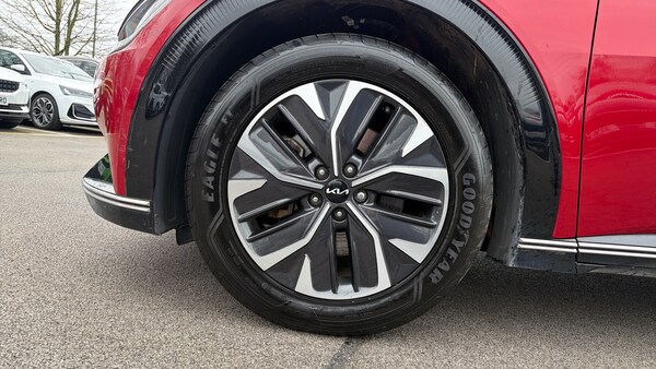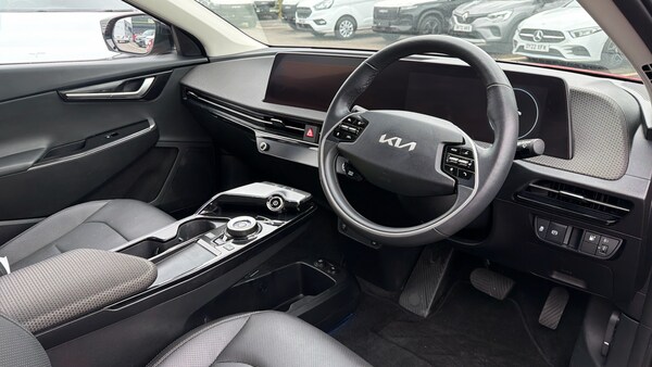 Features Include Rear Parking Sensors With Reversing Camera, Dual Zone climate, Heated Front Seats And Steering Wheel, Apple Carpaly And Android Auto. Presented in excellent condition, this Kia EV6 Air is a striking all-electric crossover that perfectly blends futuristic design, advanced technology and effortless electric performance. With its sleek, coupe-inspired styling and spacious interior, the EV6 stands out as one of the most desirable modern electric vehicles on the road. Powered by a 166kW (approx. 226PS) rear-wheel-drive electric motor paired with a 77.4kWh battery, the EV6 delivers smooth, silent acceleration and an exceptionally refined driving experience. The advanced electric powertrain provides an impressive WLTP driving range of up to around 328 miles, making it ideal for both everyday commuting and longer journeys. One of the EV6's standout features is its 800-volt ultra-fast charging capability, allowing the battery to charge from 10 to 80 percent in as little as around 18 minutes when connected to a rapid charger, helping make longer trips more convenient. The Air specification offers a generous level of comfort and technology, combining premium materials with a modern digital cockpit to create a refined and highly connected interior.