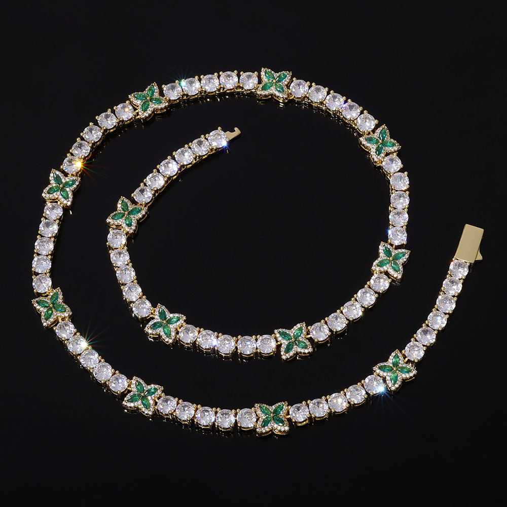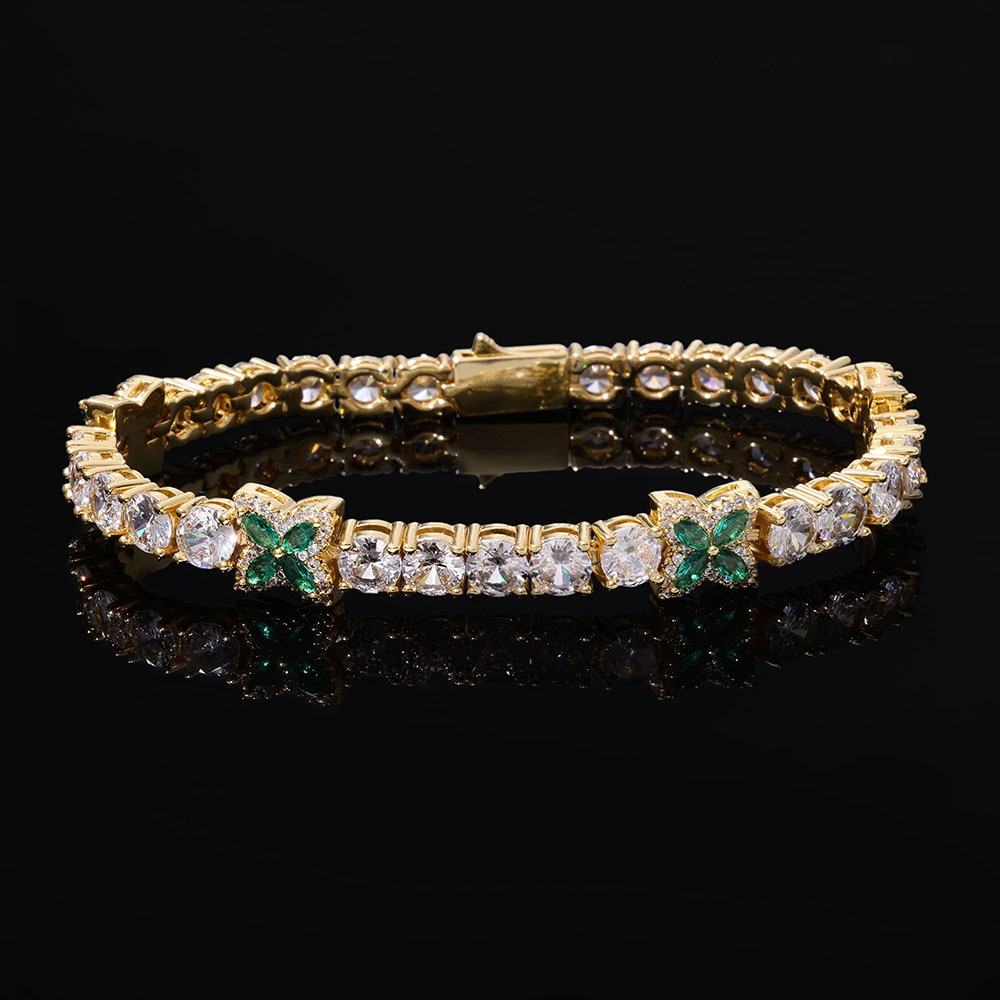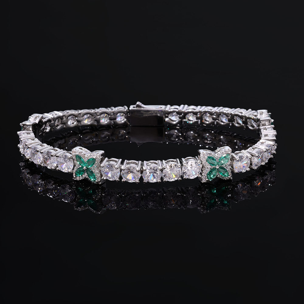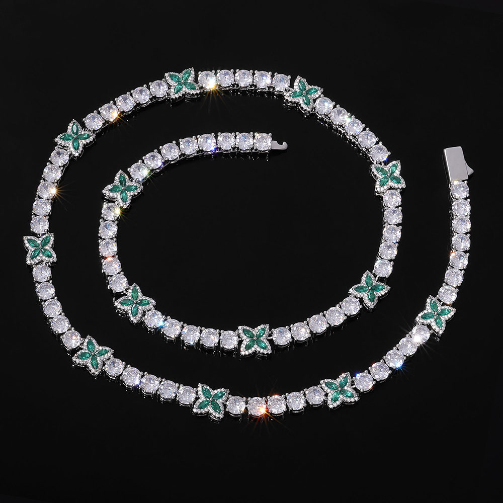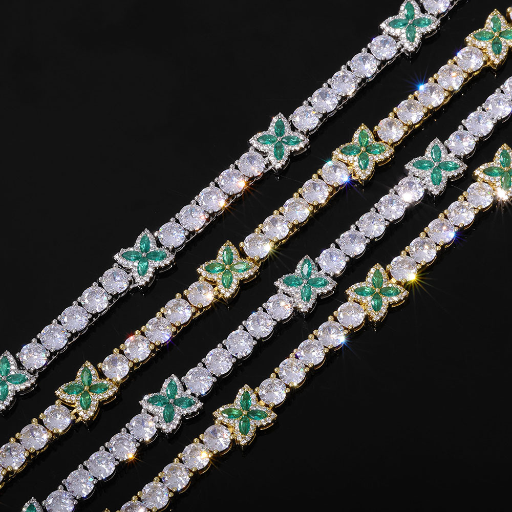 5MM White Gold Plated Four-leaf Clover Tennis Chain Choker Iced CZ Out Bracelet