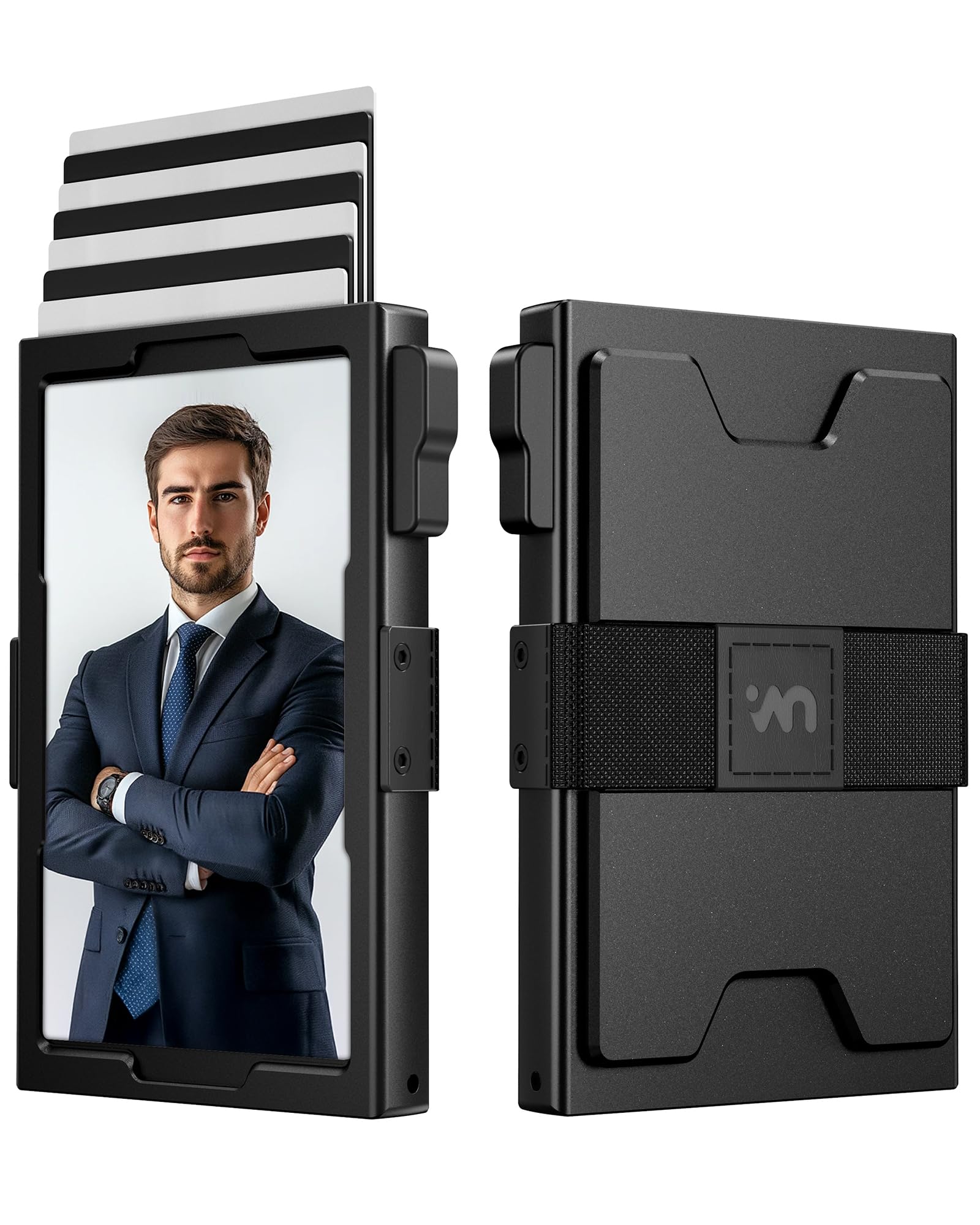 [Mens Minimalist Wallet] Designed for those who appreciate simplicity, this slim metal men's wallet fits perfectly in your front pocket! The blank card slots on the front of the wallet are perfect for storing driver's licenses and ID cards, which are easily displayed without having to rummage. The expandable back panel holds extra cards and cash. The back panel can also be removed for direct bill storage.