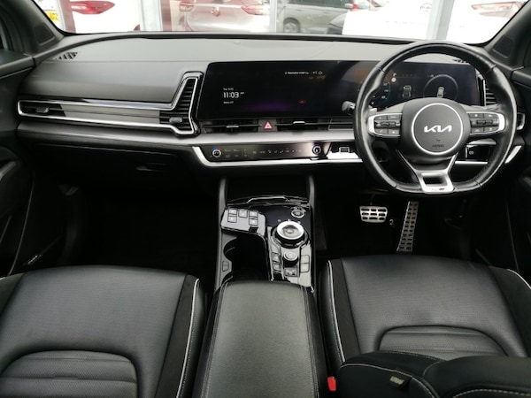 19"" GT-Line alloy wheels, 12.3"" Display with navigation, Apple CarPlay, Android Auto, 12.3"" supervision colour cluster display, 360 degree around view monitor, Electric sunroof, Smart cruise control with stop and go functionality, Heated Rear Seats, Heated steering wheel, Steering wheel audio controls, Blind spot collision avoidance assist, Drive mode selector, Forward collision avoidance assist (FCA) - city/pedestrian/cyclist/junction covering, Front and rear parking sensors, Kia Connect (UVO), Parking collision avoidance assist (PCA), Reversing camera system integrated into centre fascia screen, Smart power tailgate, Wireless Smartphone charger, Intelligent Stop and Go, DAB Radio with MP3, Harman Kardon premium sound system, Premium paint, Automatic headlight control system, Rain sensing wipers with aero blades, Rear privacy glass, 10 way driver/8 way passenger electrically power adjustable seats, 40/20/40 split folding rear seat, Ambient lighting, Black headlining, D-Shaped sports leather steering wheel and perforated inserts with GT-Line logo, Driver seat memory function, ISOFIX Child seat top tethers and anchor fixings outer rear seats, Suede leather upholstery, Three zone climate control, Electronic parking brake, Electronic stability control with downhill brake control, Engine Start/Stop Button with Smart Entry System, LED daytime running lights, LED Headlights