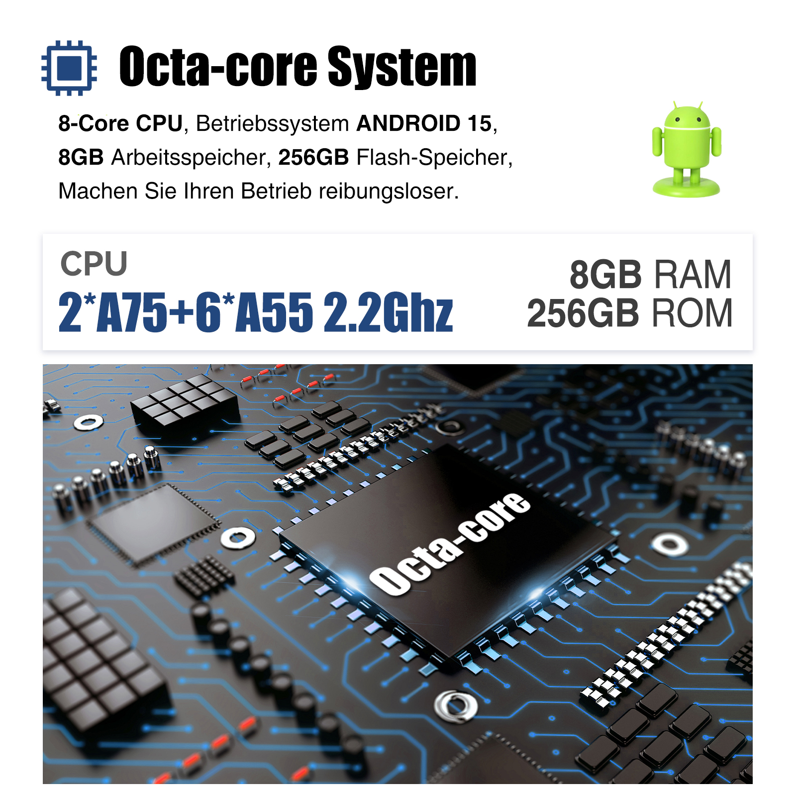 System: Android 15Mosfet Endstufe: 4 x 45 Watt für maximale Power