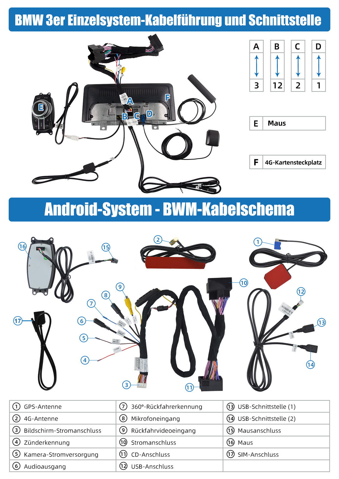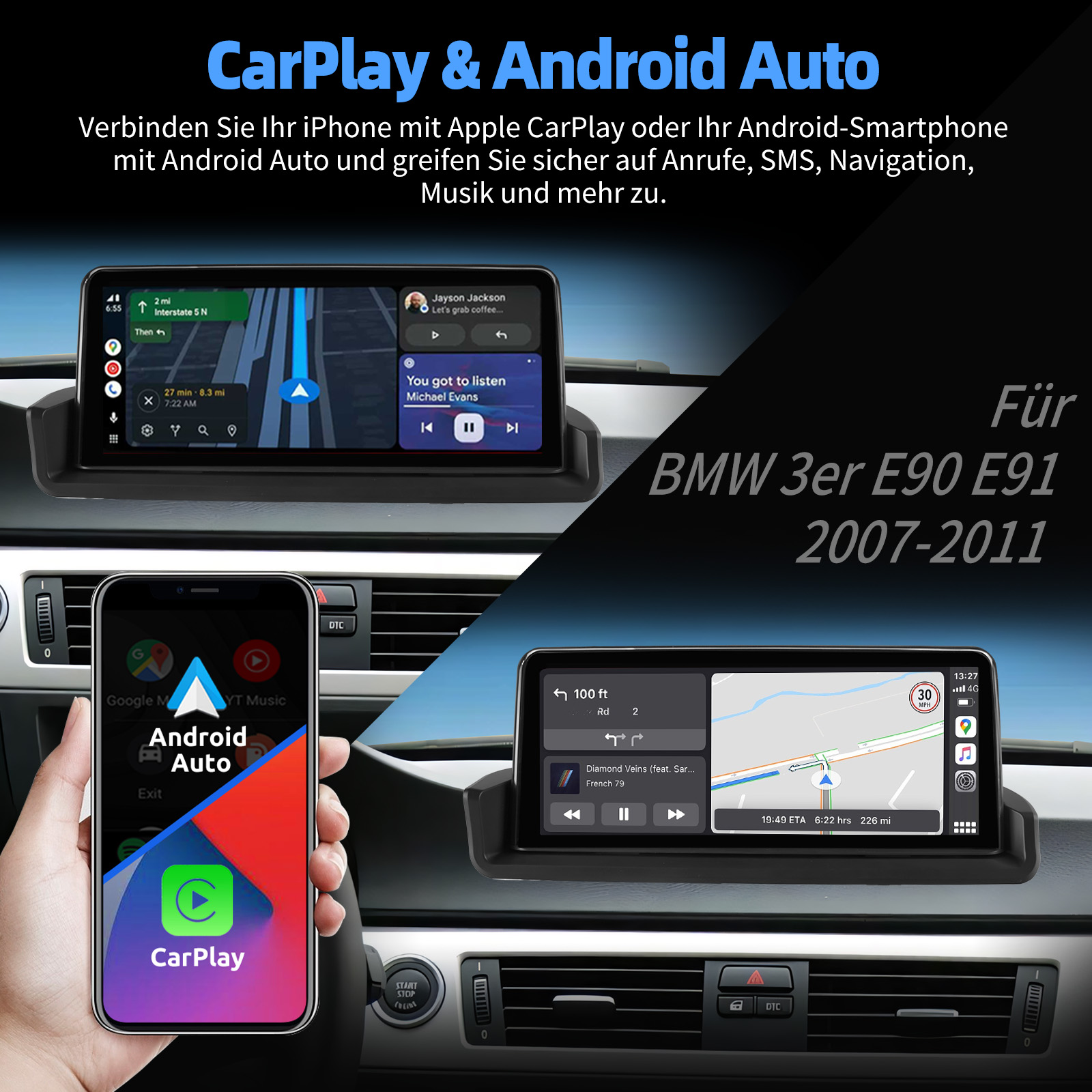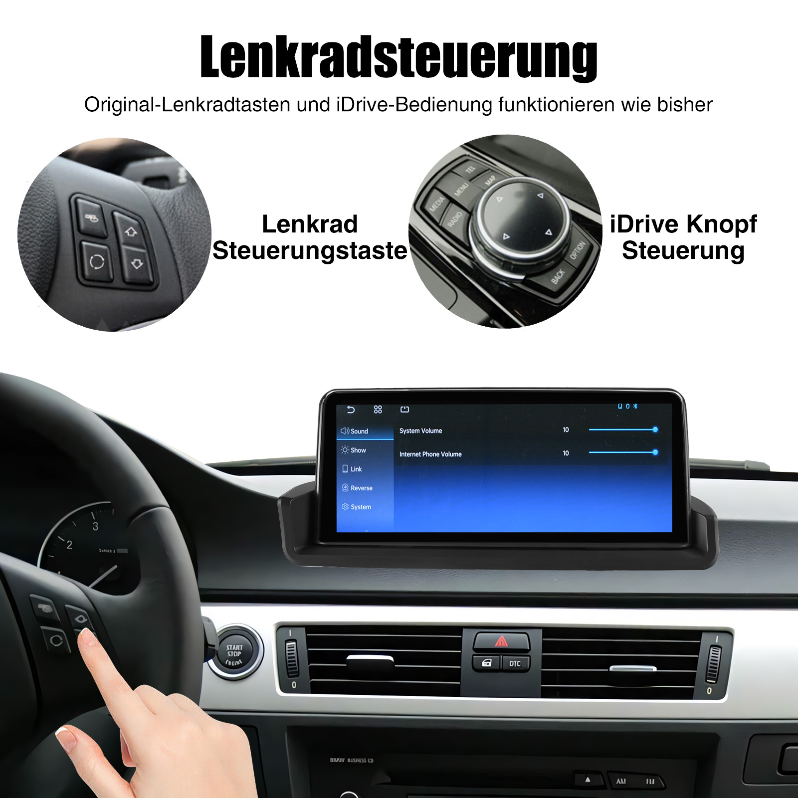 - Eingebauter Can-Bus-Decoder, kompatibel mit den meisten Lenkrad-Steuerungsfunktionen und Original-Auto-Idrive-Knopf.