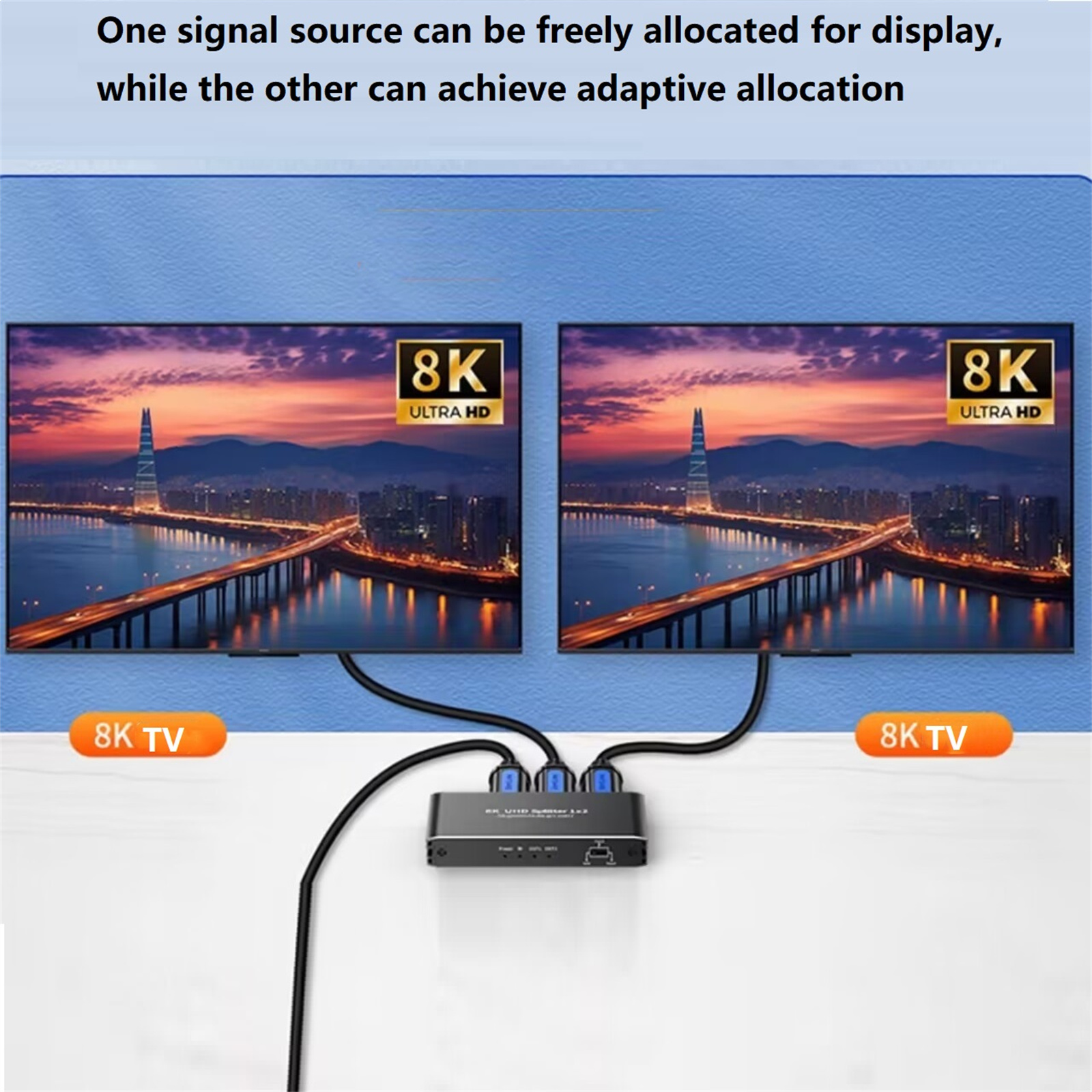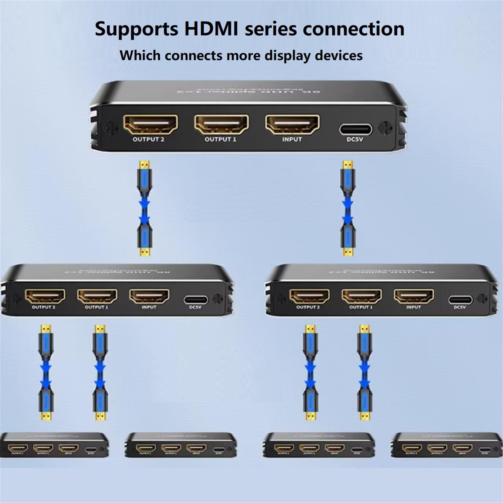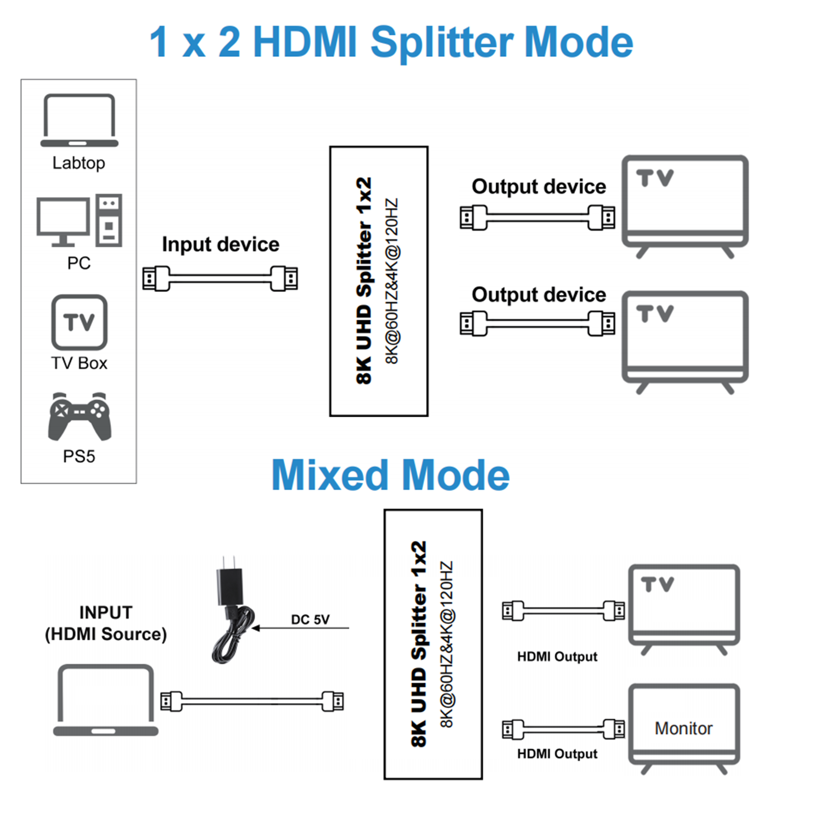1. Connect the input source and output displays to the HDMI splitter, Please refer to the connection Image.