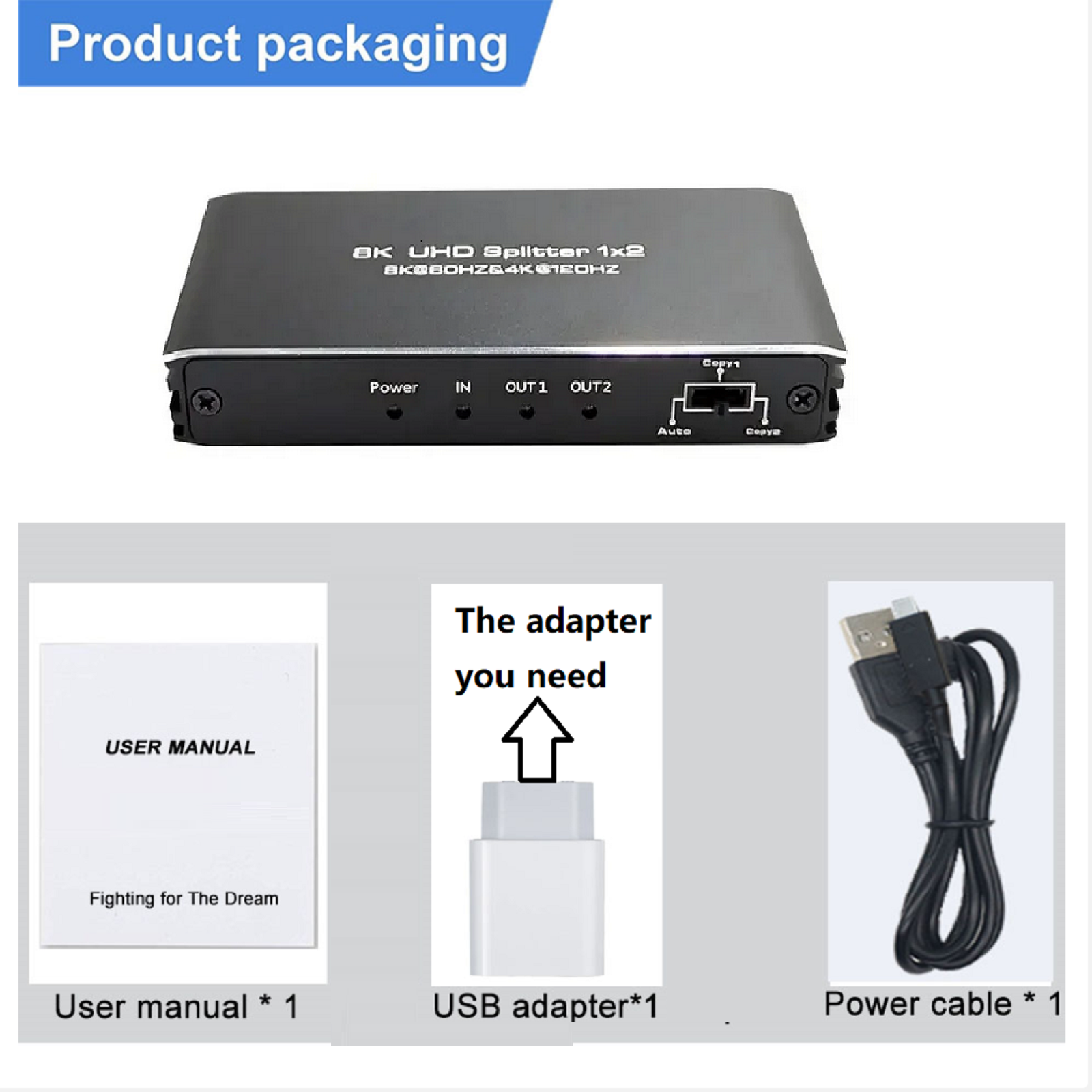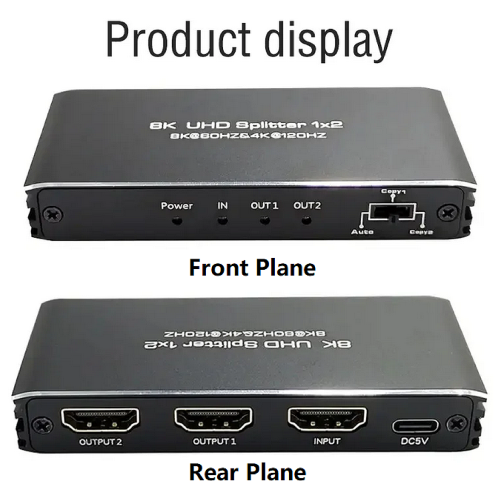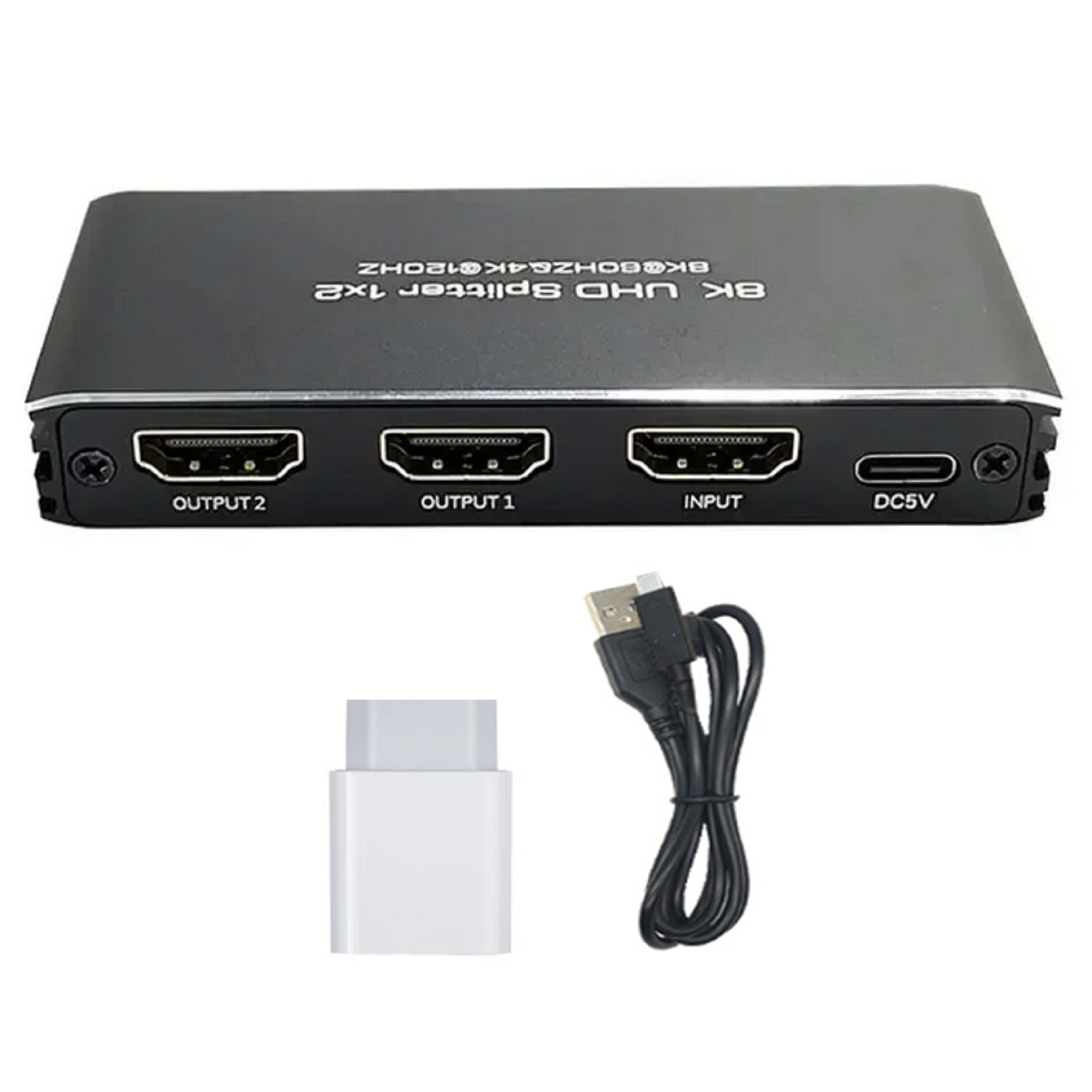 2. Connect the DC5V power supply to the splitter. Please note that