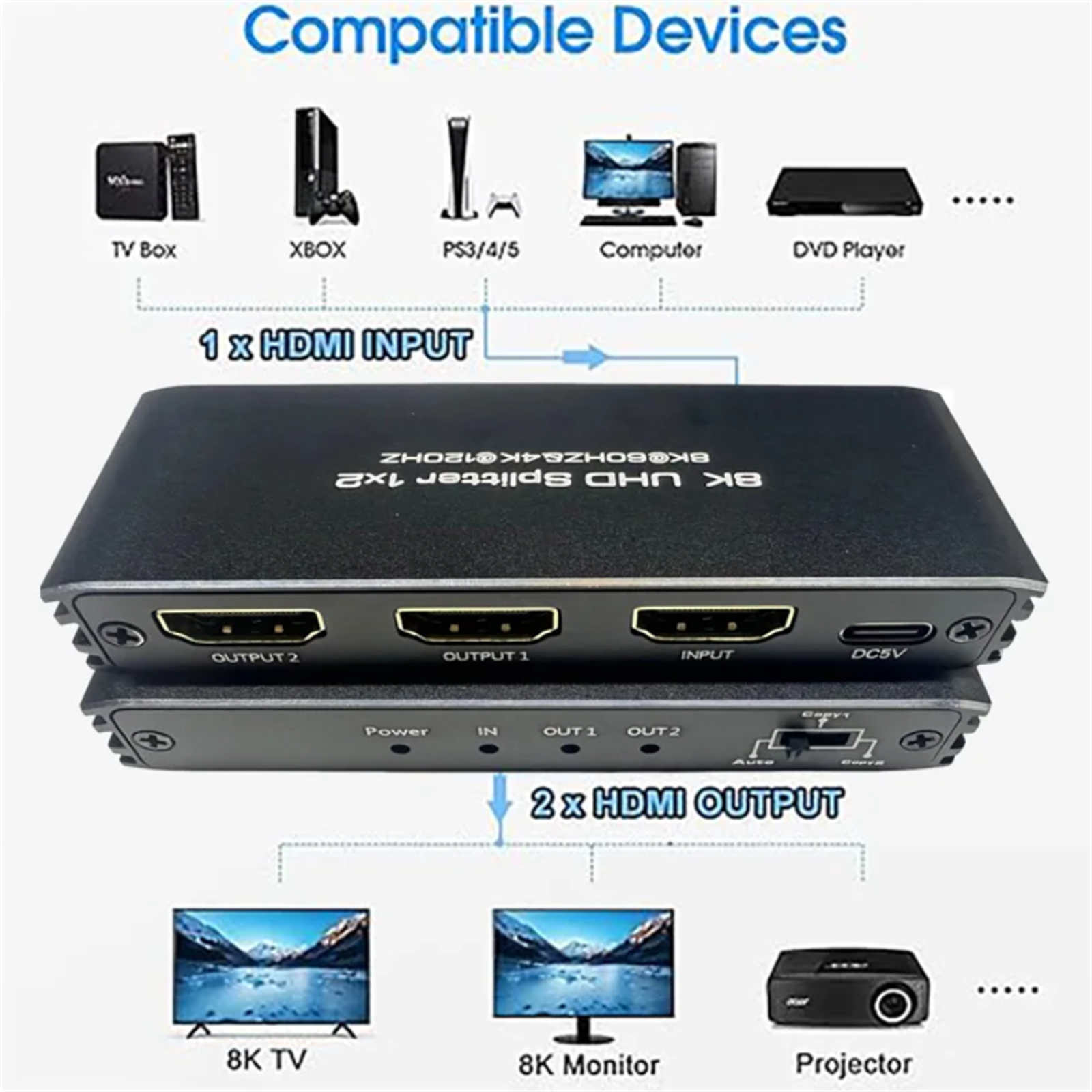 1x 1 In 2 Out HDMI Splitter