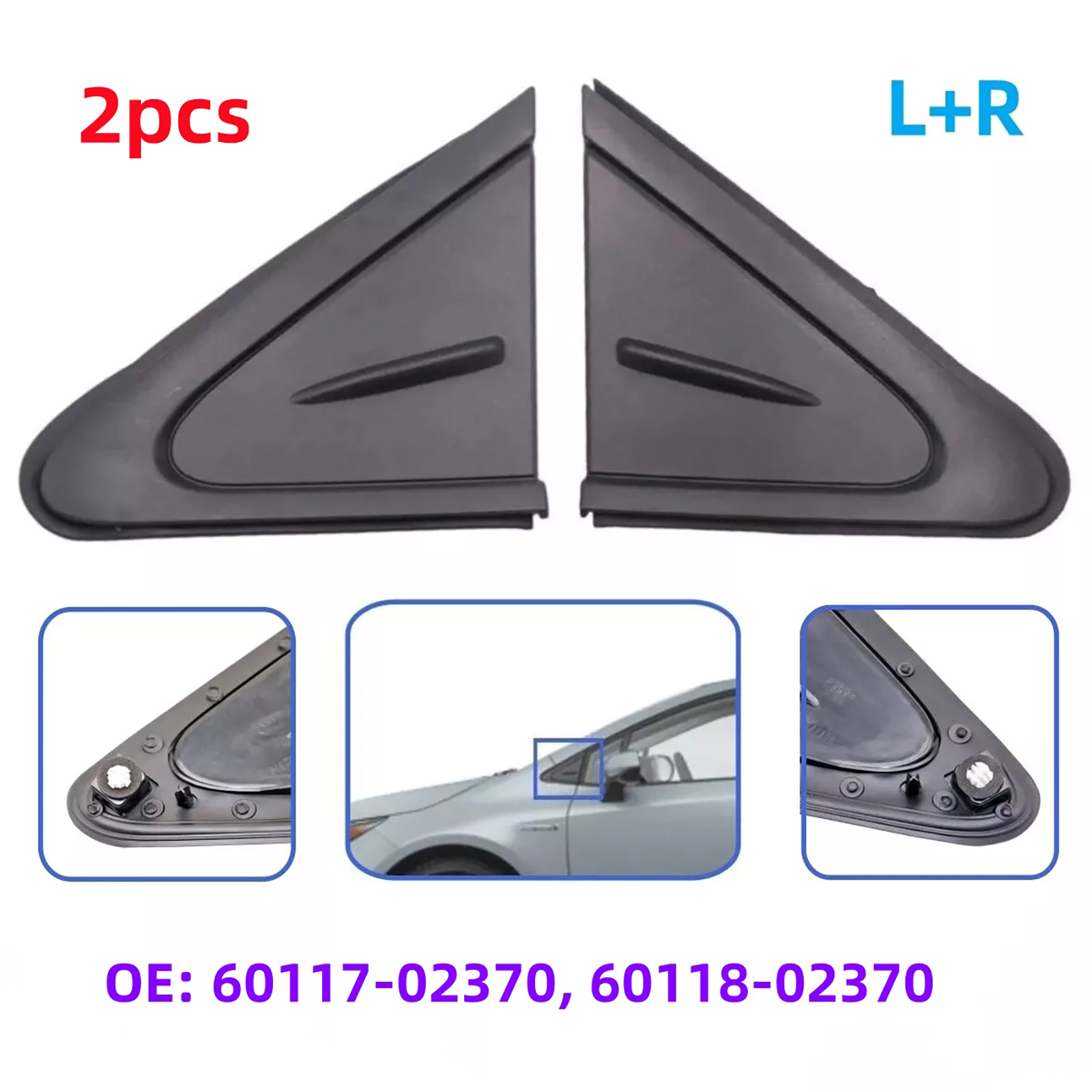 1 Pair Front L+R Fender Corner Molding Trim Cover for Toyota Corolla 2019-2021 60117-02370 60118-02370