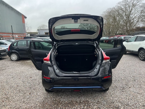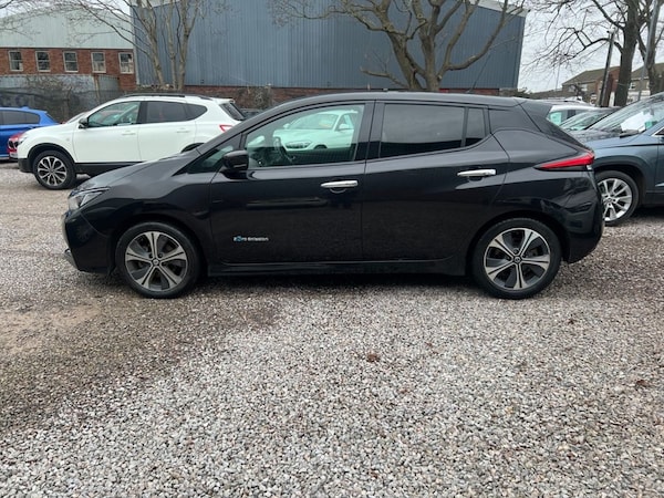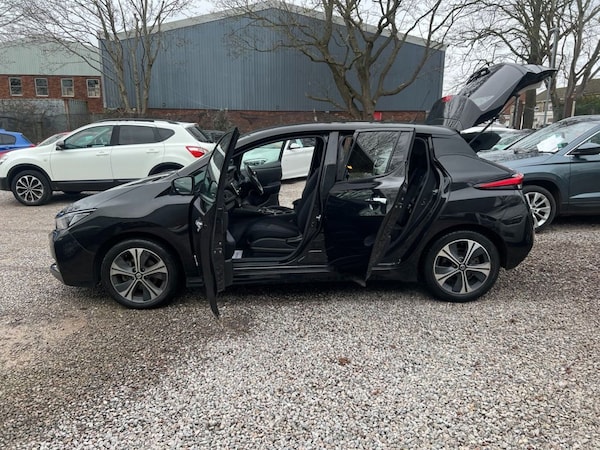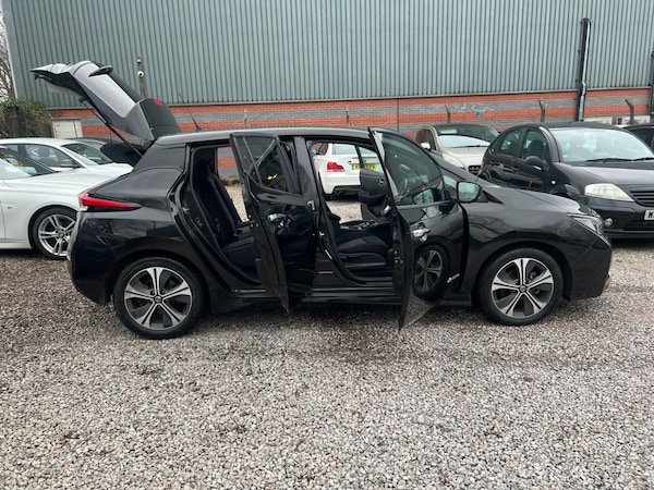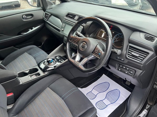 This Nissan Leaf has a fantastic level of specifications including heated steering wheel, sat nav, DAB radio, Bluetooth, 360 reverse camera, re-generative braking, air conditioning, heated seats and so much more! This car comes with 6 services and 2 keys. You can reserve it with a £95 fully refundable deposit! This car has 100% battery health. Please call us for more information or to book a test drive on Here at Moto Smart were dedicated to offering an excellent customer experience. All of our vehicles are HPI clear, have a 3 month warranty that is extendable up to 3 years and we also offer a market leading price promise. We also offer a nationwide delivery service and all our cars come with an independent safety check completed. If you require any further information about this car please dont hesitate to call our friendly team on or visit our website . All car data is supplied by third-party sources. While every effort is made to ensure the data is as accurate as possible, any inaccuracies are not under our control. Please check with the a member of staff before purchase for specification confirmation, as we cannot accept responsibility for specification unless confirmed via email.Bluetooth + Sat Nav, Heated front and rear seats, Heated steering wheel, Parking sensors, Auto Lights, Suede Effect Bio Fabric - Black, Pearl Black, 1 USB Port, 12V Socket, 17in Alloy Wheels, 6 Airbags, 6.6kW AC On Board Charger, ABS with EBD, AVM with Moving Object Detector, Air Conditioning - Automatic, Alarm - Thatcham, Audio System with 6 Speakers, Auto Hazard Lights, Auto Rain Sensing Wipers, Automatic Headlights - Dusk Sensor, Blind Spot Warning, Body Coloured Door Mirrors, Brake Assist, Cross Traffic Alert, Door Handles - Chrome, E-Pedal, ESP - Electronic Stability Programme, EV Connect Telematics System, EVSE 6M or Mode 3 - 6M, Electric Folding Door Mirrors, Electric Speed-Sensitive Power Steering, Faster Heater, Follow Me Home Headlights, Forward Emergency Braking with Pedestrian Recognition, Front Fog Lights, Front Seat Back Pockets, Front and Rear Electric Windows, Gloss Black B-pillar, Halogen Headlamps with LED Signature, Headlights - High Beam Assist, Heat Pump Energy-Saving Cabin Heating System, Heated Front and Rear Seats - Heated Steering Wheel, Hill Start Assist, I-Key and PES, ISOFIX on Rear, Integrated Turn Signals in Mirrors, Intelligent Around View Monitor, Intelligent Cruise Control, Intelligent Driver Alertness, Intelligent Lane Intervention, Intelligent Trace Control, Interior Rear View Mirror with Auto Dimming, Lane Departure Warning, Leather Steering Wheel, Manually Adjustable Drivers Seat - Slide - Recline and Lifter, Manually Adjustable Passenger Seat - Slide and Recline, Nissan Connect 2 Kai2 Navi with DAB and Apple Carplay - Android Auto, Nissan Connect EV, Nissan Connect EVO 7in Touchscreen Navigation and Entertainment System, Parking Sensors 4x Front - 4x Back, ProPILOT, Quick Charger Capacity, Rear Lamp Styled LED, Rear Privacy Glass, Speed Limiter, Steering Wheel - Heated, Tilt Adjustable Steering Wheel, Trip Computer