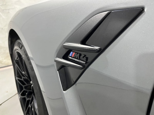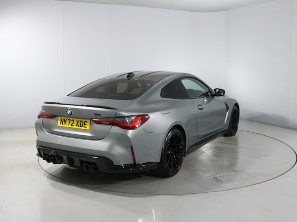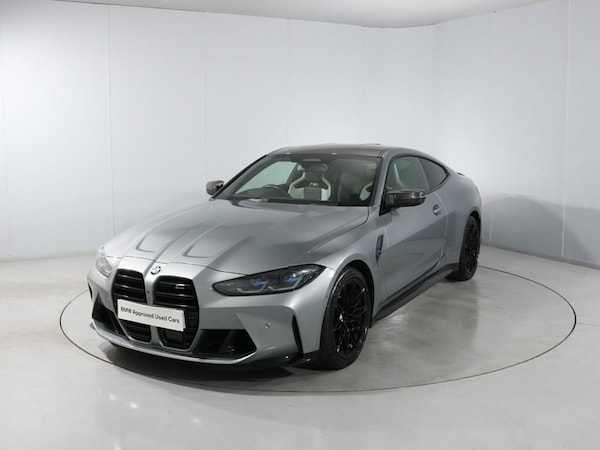 Here at Lloyd Newcastle BMW, we are delighted to welcome this Skyscraper Grey M4 Competition M xDrive Coupe to our range of Approved Used cars. First registered in September 2022, it comes with a full service history, the latest done with us on the 16th March 2026 as well as a 12 month warranty! This M4 has also had 4 brand new tyres and rear brake pads fitted as part of our extensive prep and checks! Staying true to its roots the BMW M4 Competition showcases a strong, athletic silhouette and with the new contoured bonnet, frame-less kidney grille and horizontal double-bar design, its sporty presence is elevated. This M4 Competition comes with the Ultimate Pack which is has