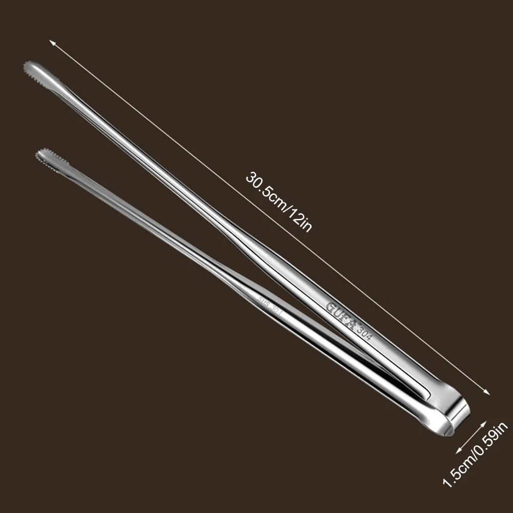 3.Easy to Clean: The smooth and flat surface of the stainless steel material resists oil stains and food residues, making cleaning a breeze. Simply wipe with a damp cloth or rinse with water to keep the food tongs clean and shiny, maintaining their pristine appearance for a long time.