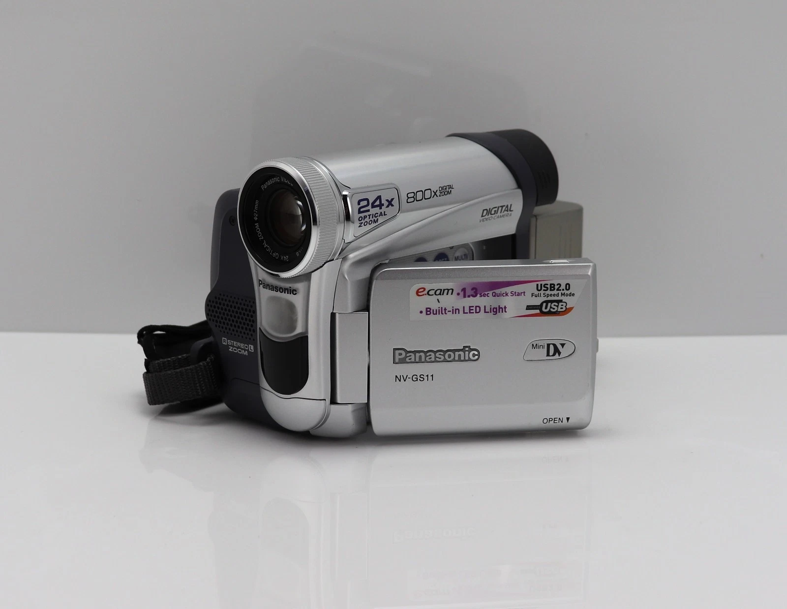 The Panasonic NV-GS11 - Enjoy remarkable 24x zoom magnification in a camera thats small enough to take anywhere. This lens is not only the most powerful zoom offered in a home-use digital video camera, it also features low distortion. And because the zoom is optical, it captures both moving pictures and still with exquisite beauty.