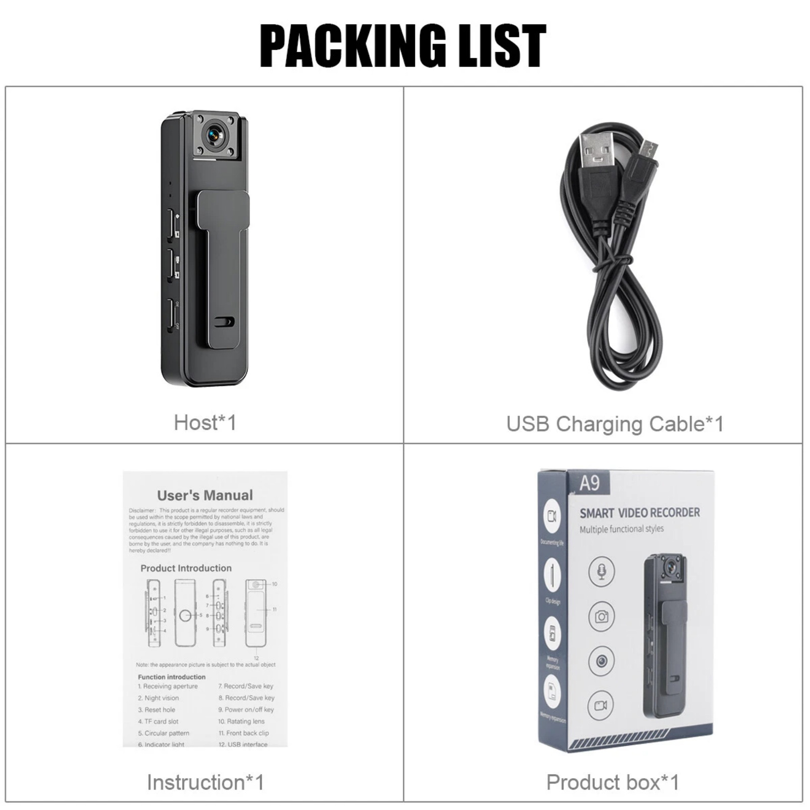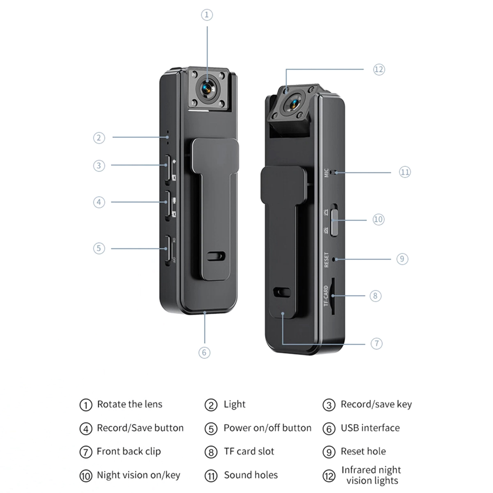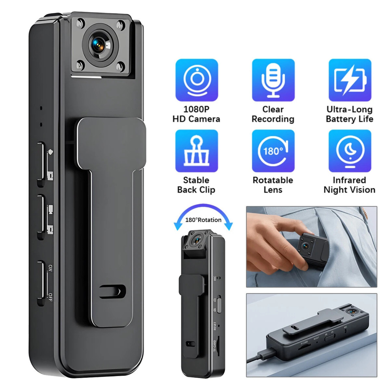 Smallest 1080P Body Cam Wearable Recorder with Rotatable Lens and USB Cable