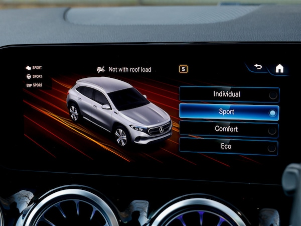 Smartphone integration with Apple CarPlay and Android auto, EQ navigation services - map (range display), display charging stations, programming of charging settings and pre entry climate control, Blind spot assist with exit warning function, Active speed limit assist, Active lane keeping assist, Acoustic ambient protection, Wireless charging system for mobile devices, MBUX augmented reality for navigation, Comfort suspension, MBUX multimedia system with 10"" Digital instrument cluster and 10"" media display with touchscreen, DAB Digital radio, Advanced sound system with 10 speakers and a total system output of 225 watts, AMG Line bodystyling including AMG front apron with integrated air curtain and AMG rear apron with diffusor optics, Electric front windows, Electric rear windows, Electrically operated panoramic glass sunroof, Daytime running lights, Front fog lights, LED High performance headlamps with adaptive highbeam assist, Privacy glass - heat insulating dark tinted glass, Rain sensor windscreen wipers, 3 spoke AMG multifunction sports flat bottom steering wheel in nappa leather with galvanised shift paddles, 40:20:40 split folding rear seats, Ambient lighting with choice of 64 colour settings, ARTICO man-made leather / MICROCUT microfibre upholstery, Heated front seats, THERMOTRONIC automatic climate control, Stowage package - EQA, Seat comfort pack - EQA, Parking package with reversing camera - EQA, Mirror package without dimming interior and drivers exterior mirrors- EQA, Keyless go comfort package - EQA, Interior light package - EQA, Isofix child seat anchor points on outer rear seats, Radar-based recuperation, Active brake assist, 6 airbags - Driver, front passenger, curtain and side airbags, Guard 360 degree vehicle protection, Remote central locking, 19"" AMG 5 twin spoke light alloy wheels