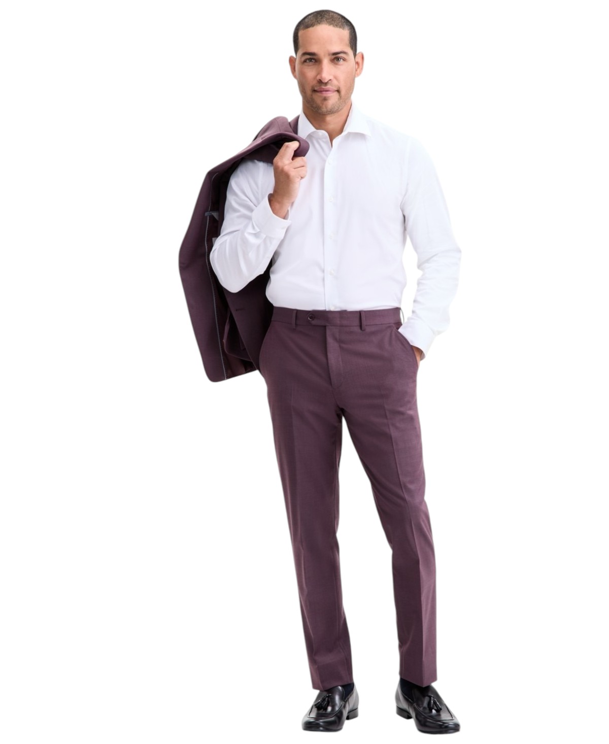 Bar Iii Mens Slim fit Dress Pants 34 / 30 Purple Solid Stretch Wool