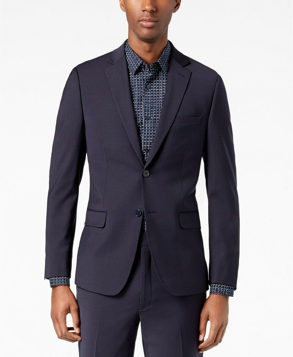 Calvin Klein Mens Skinny fit Suit Jacket Blazer 36 S Navy Blue Solid Stretch