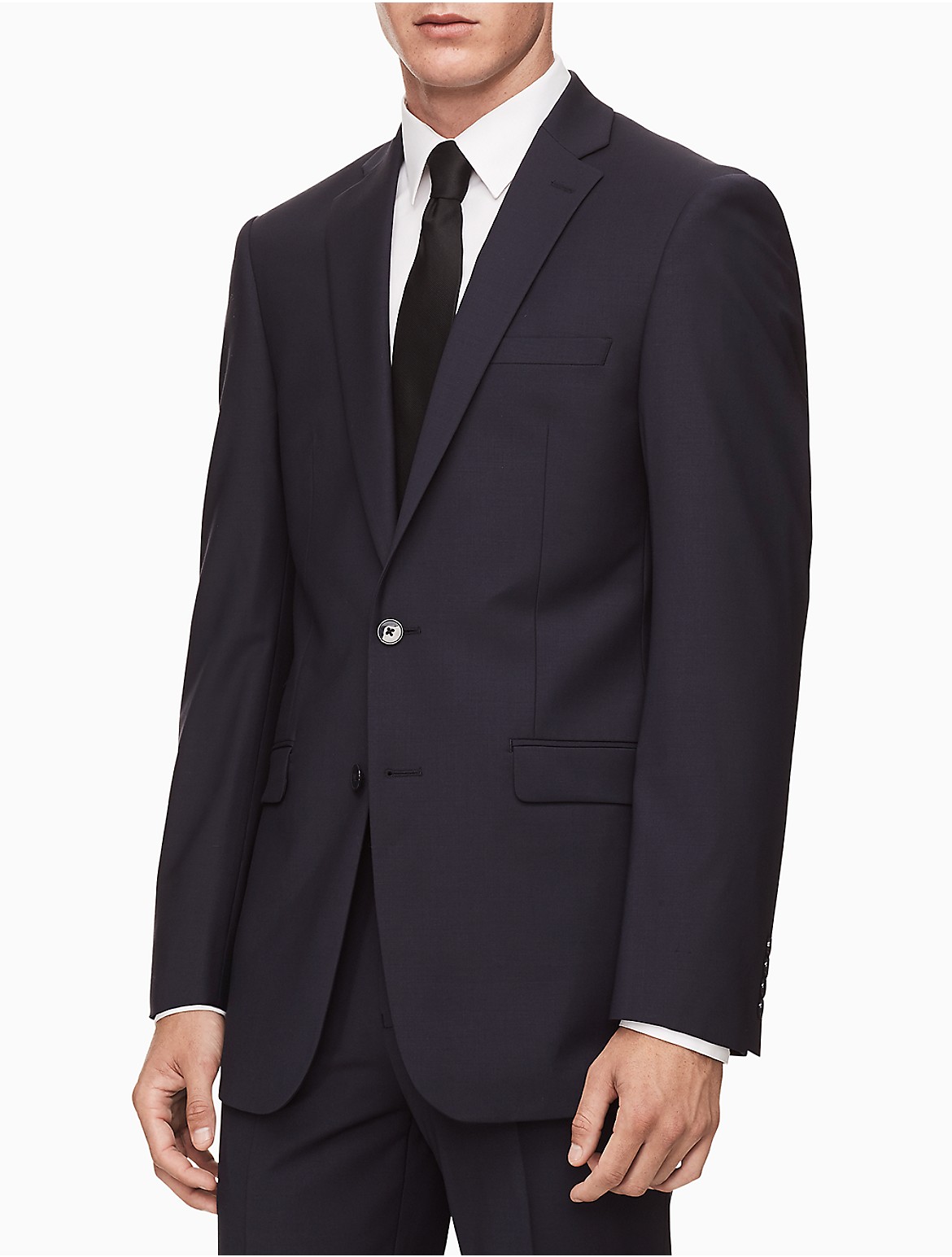 For a chic professional look with exceptional comfort, choose the polished skinny fit and extremely flexible Infinite Stretch performance of this stylish charcoal suit jacket from Calvin Klein.