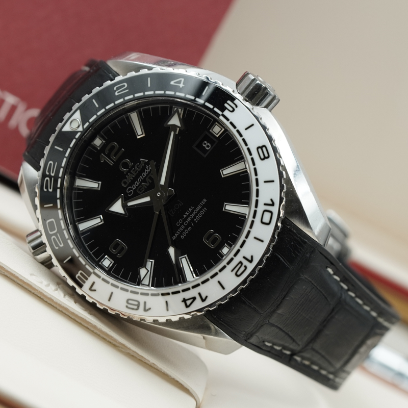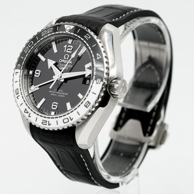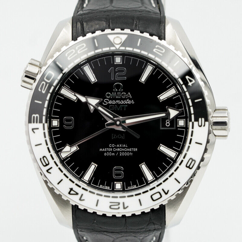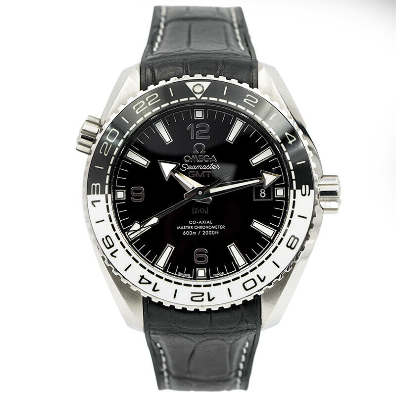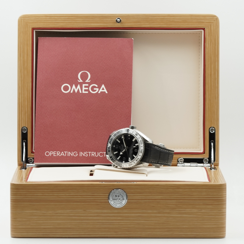 This Omega Planet Ocean GMT was recently traded in to the store and is in very good condition. The 43.5mm stainless steel piece was built to dive up to 600M. The black and white bezel has earned the watch a few nicknames from Omega fans: including the "Oreo" and the "Cruella DeVille". The GMT comes on a rubberized alligator strap with a deployant buckle. This does come with the box and Book. If you have any questions about the piece, please reach out.