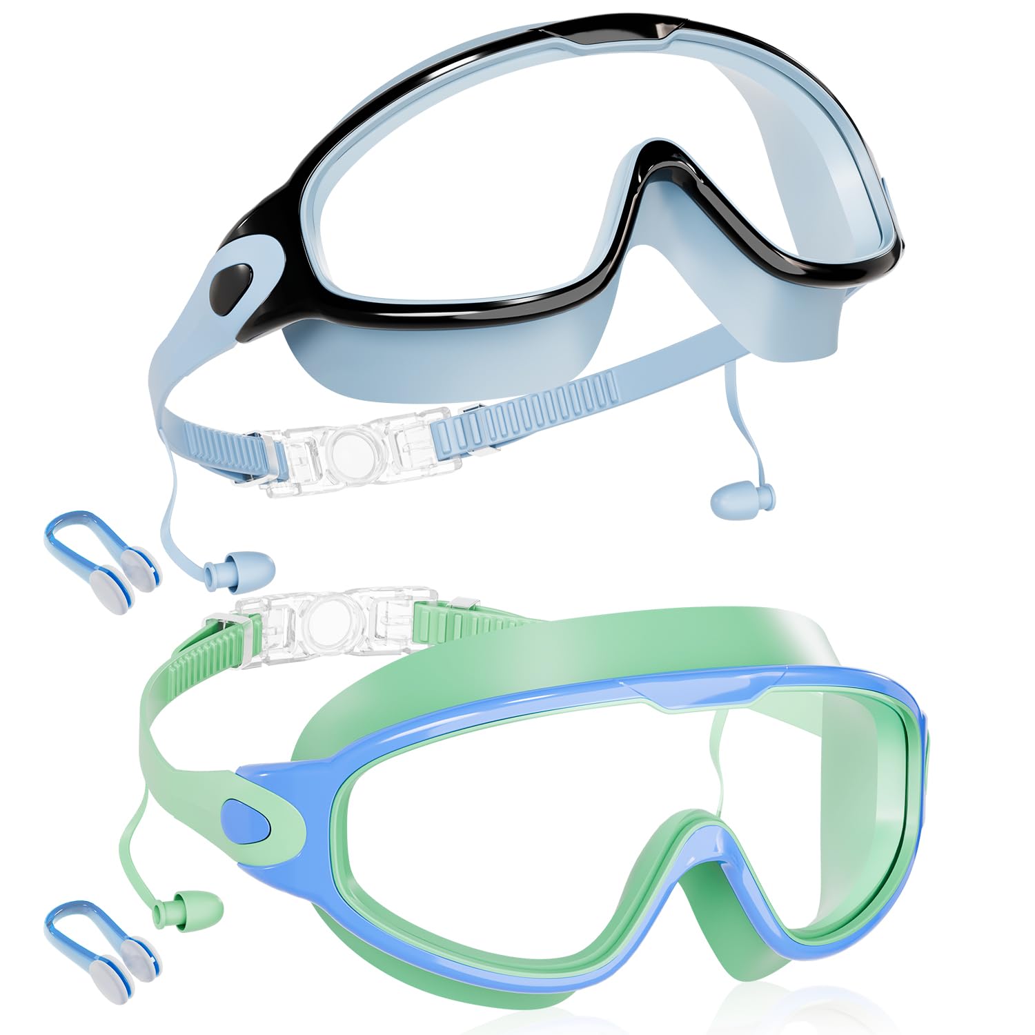 Aegend New Kids 2 Pack Wide View Swim Goggles, Kids, Light Blue & Green