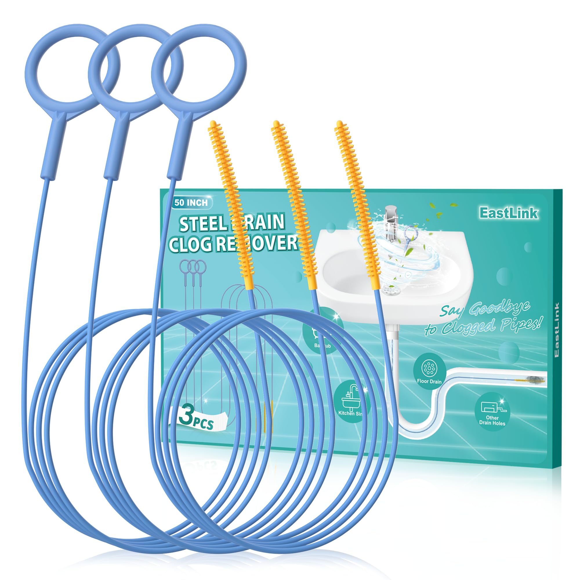 EastLink 50 Inch Extra-Long Drain Snake 3 Pack, Reusable Sink with Blue