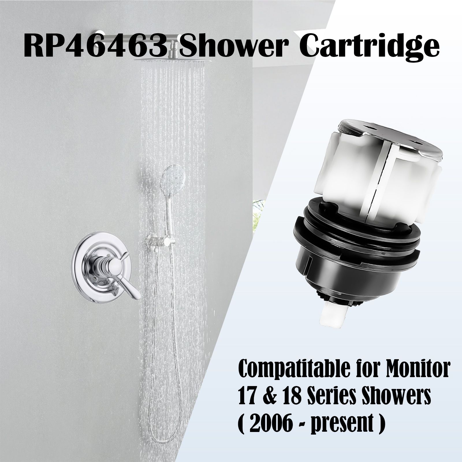 RP46463 Cartridge Fits Delta Monitor 17 and 18 Series 2007-Present Dual Function Shower Faucet Parts with Gray Cap Replacement Kit for R10000 R22000 Valve Body Pressure Balance Valve Wide System Compatibility: Fits RP46463 delta 17 series cartridge works for Monitor 17 and 18 series dual-function faucets made since 2006. This gray cap assembly fits R10000 and R22000 rough-in valves, making it the ideal match for your setup Stable Water Temperature: Maintain a steady flow with the pressure balance feature. It balances hot and cold water pressure to keep temperatures within 3.6 °F (±2°C) Fahrenheit. This stops sudden ice cold or burning hot surges during toilet flushes Rugged Construction Quality: Built with a metal base and tough engineering plastic housing, this rp46463 shower cartridge is made for long-term use. It stays strong through 20,000 cycles, lowering future upkeep needs for your plumbing system Quick Leaking Solution: Solve annoying leaks or erratic water flow without a pro plumber. This shower cartridge replacement kit includes spring seats and rubber seals to fix drips fast. It restores smooth motion to your handle for a better feel Reliable Daily Flow: This part fits both the 17 and 18 series dual-function faucets produced after 2007. Product Description