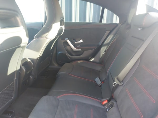 Apple CarPlay, Android Auto, Cruise control, Speed limiter, LED daytime running lights, LED Headlights, Rear parking sensor, 10.25 inch Instrument display with digital cockpit, 10.25 inch touchscreen central media display, Active lane keeping assist, Attention assist - Monitors steering behaviour and long journey fatigue, Blind spot assist, Bluetooth connection, Car wash mode, Cruise control with limiter, DYNAMIC SELECT with a choice of driving modes (ECO, Comfort, Sport and Individual), ECO start/stop function, Hey Mercedes Voice activation, Mercedes me connect including emergency call system, accident recovery, breakdown and maintenance management, Mercedes me remote services, DAB digital radio tuner, MBUX multimedia system, Mercedes Benz sound system (100 W) with 6 speakers, Pre installation for Mercedes Benz Link, AMG body styling with AMG front apron and rear apron and visible exhaust tailpipe in chrome trim elements, Electrically adjustable and heated door mirrors with integrated LED indicators, Rain sensing windscreen wipers with two sensitivity settings, Automatic child seat recognition sensor, Air conditioning - One zone THERMATIC automatic climate control with automatically controlled air distribution, Heated front seats, Sport seats with fixed head restraints, Keyless go comfort pack - CLA, Light and sight pack - CLA, Mirror pack - CLA, Parking pack with reversing camera - CLA, Seat comfort pack - CLA, USB package plus - CLA, Sports braking system, Alarm system with immobiliser and interior protection -Thatcham category 1, Guard 360 deg vehicle protection - tow away protection with visual, acoustic warning, interior monitoring, preinstallation for parking damage, Remote central locking and crash sensor with emergency opening function, 18"" AMG 5 twin spoke light alloy wheels painted in termolite grey with high sheen finish, Summer tyres, Tirefit tyre sealant kit