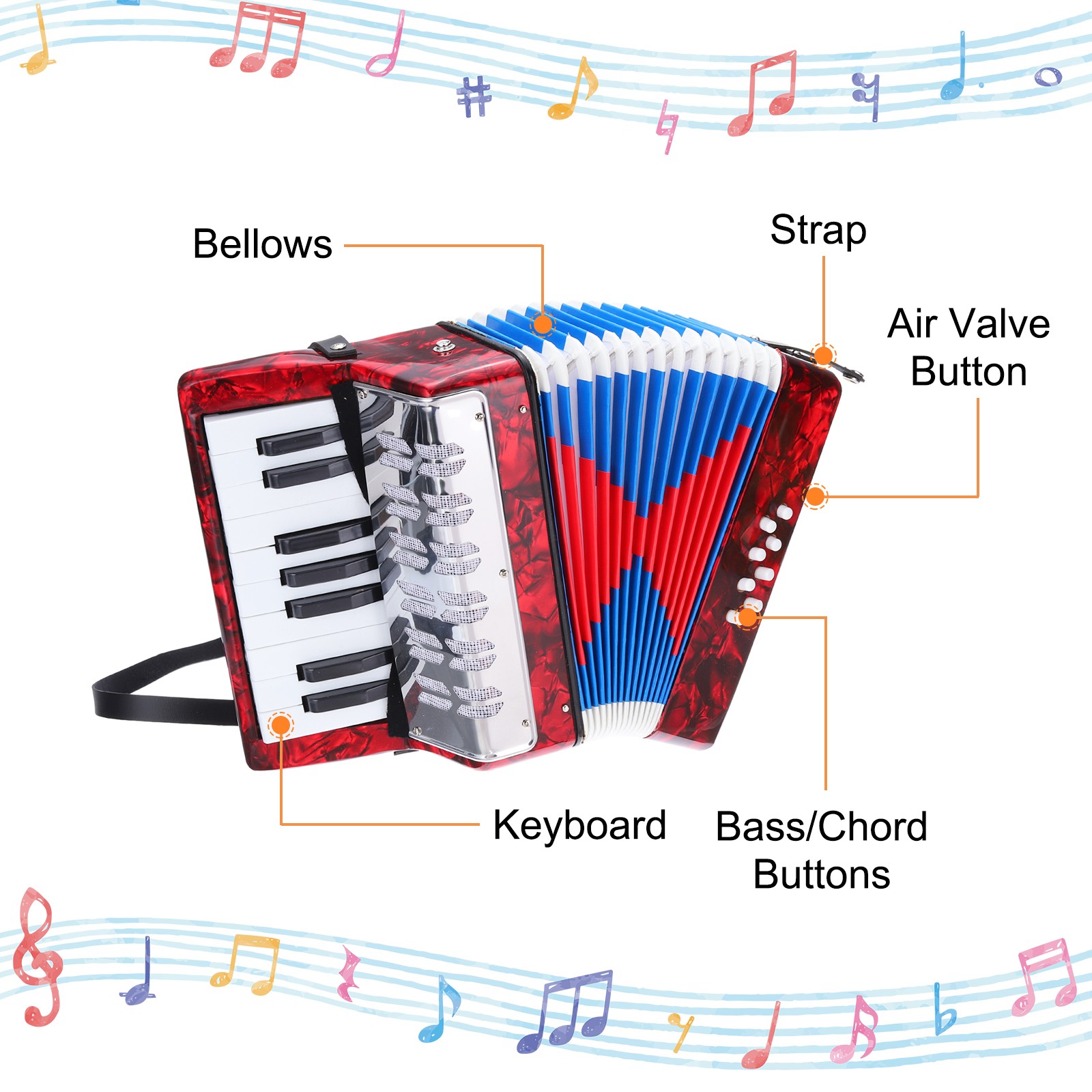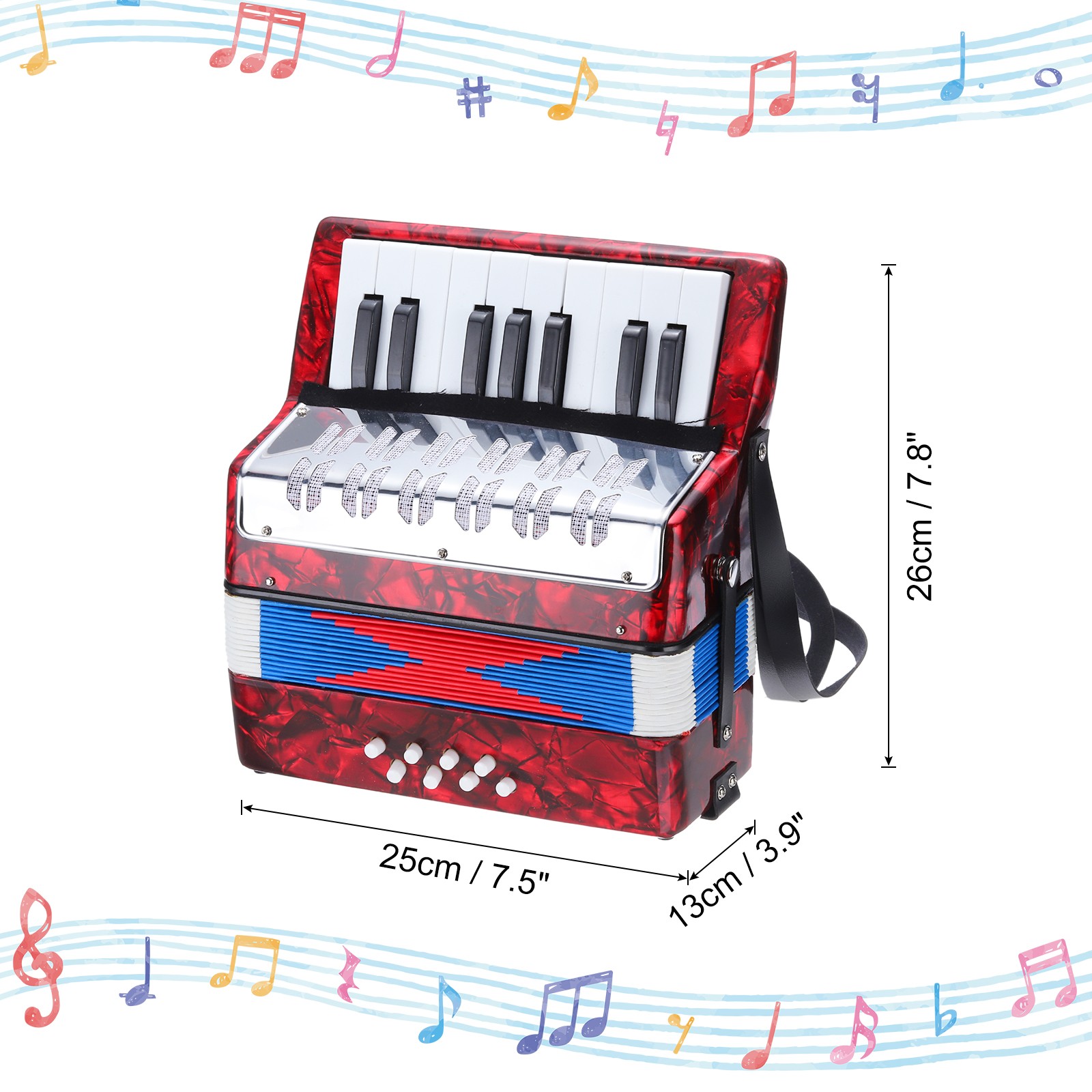The 17 keys piano accordion can meet the needs of general music and is easy to operate.