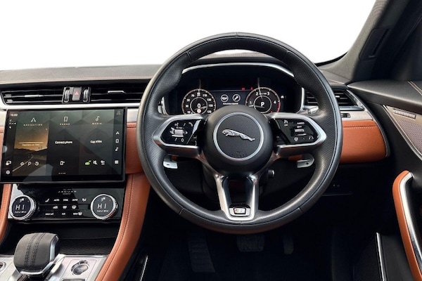 Here at Lloyd Jaguar Stockton, we are pleased to welcome this Jaguar F-Pace 2.0 D200 R-Dynamic SE finished in Santorini Black complemented by 20in Gloss Black Alloy Wheels with Siena Tan Perforated DuoLeather Sport Seats. Supplied new in November 2021 with only 37,232 miles on the clock, this F-Pace comes with a recent Service and will not disappoint. Not to forget as part of the Jaguar Approved programme it will come with 12 months warranty and 12 months roadside assistance, ensuring your complete peace of mind when purchasing your vehicle from us. The Jaguar F-PACE merges dynamic handling, luxurious comfort, and advanced technology in a performance SUV like no other. The exterior chrome pack adding chrome trims give the exterior a more premium polished look while the fixed panoramic sunroof fills the interior with natural light. Stay comfortable and relaxed in those winter months thanks to the heated front seats as well as the heated steering wheel. Seamlessly connect your phone to the 11.4 PIVI Pro infotainment system to use features such as Navigation, Apple CarPlay and Android Auto for your all favourite apps. Front and Rear parking aids combined with a 3D Surround camera that provides an ariel view of the car making parking stress free while Cruise control and speed limiter along with lane assist and blind spot assist make those long commutes less demanding and more relaxed. With 33 Retailers across the North of England, you can collect your used car from any Lloyd Motor Group retailer. Your approved used car from Lloyd Jaguar Stockton could be closer than you think.