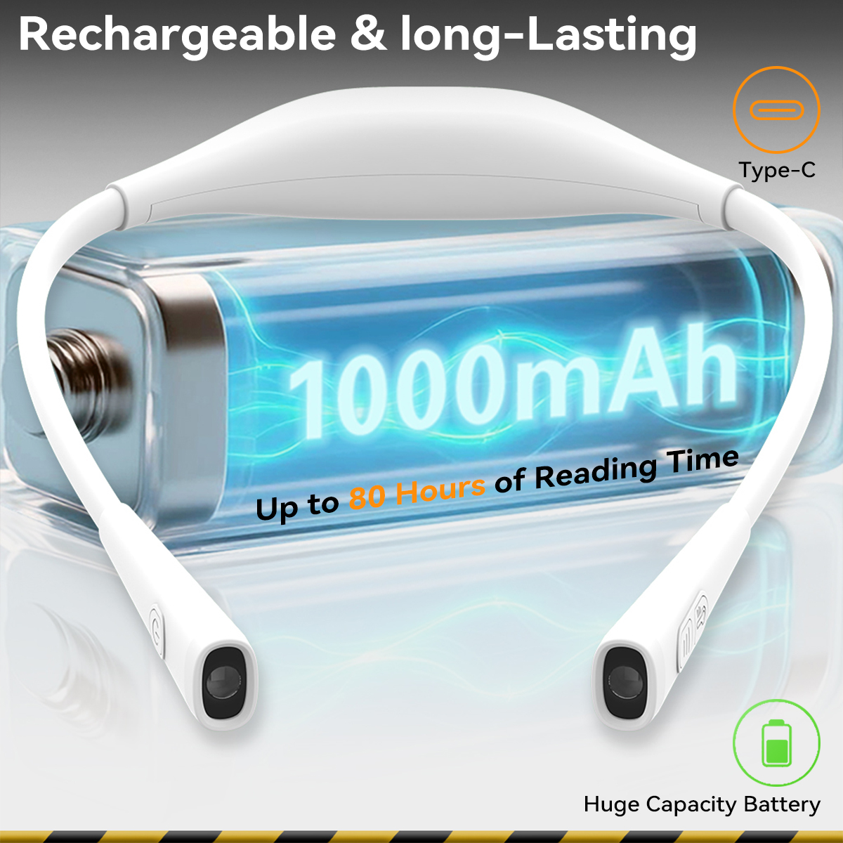 💡 Rechargeable and long-lasting 💡: Our book light is rechargeable and comes with a high-quality 600mAh battery that can provide up to 10 hours of undiminished brightness (for general reading, single head). In other words, it's the same.