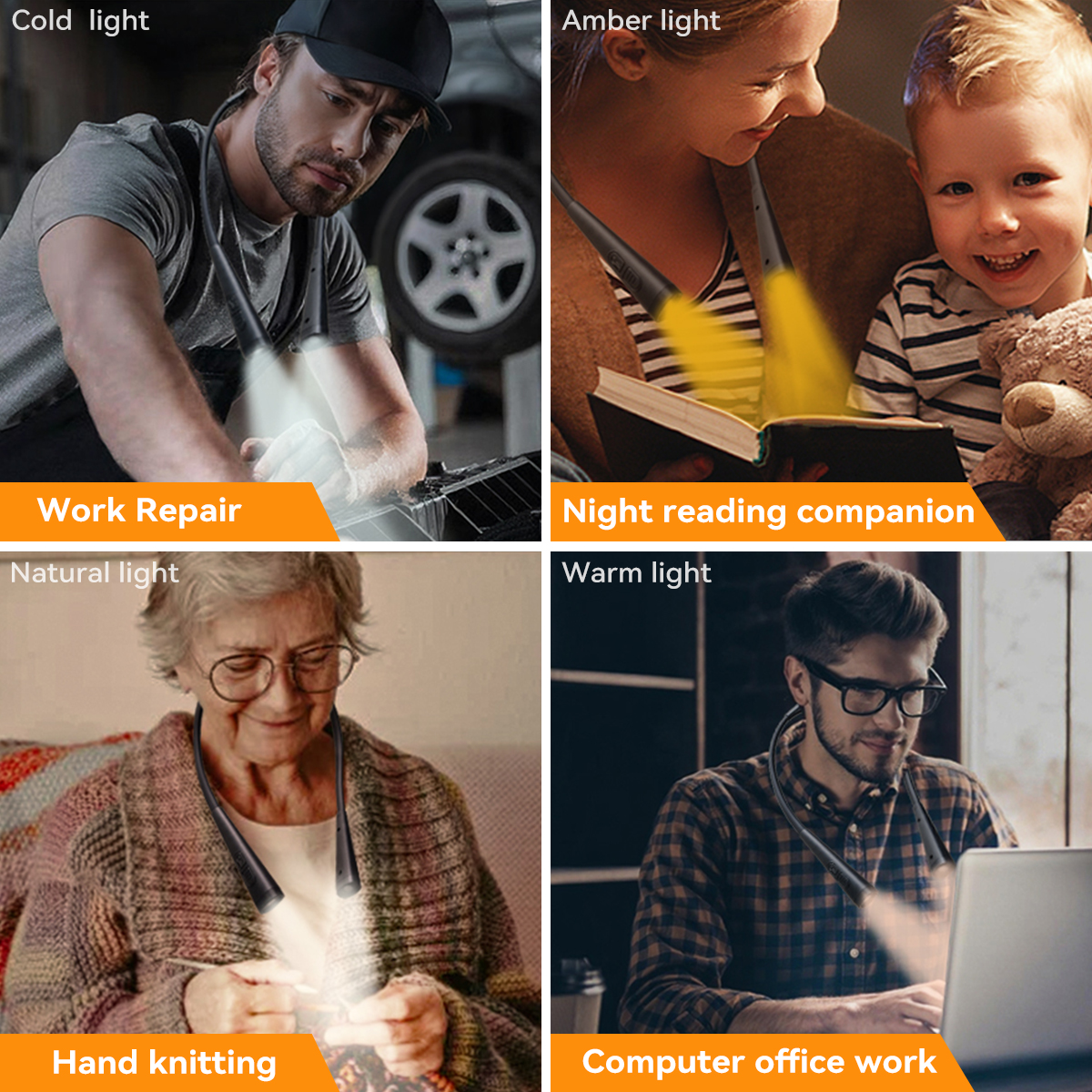 💡【Easy To Use】💡: Our portable night light is made of high-quality silicone glue and is easy to use. Simply wear it around your neck to free up your hands, making it perfect for reading in the car, on a flight, while knitting, or during outdoor activities like walking, jogging, maintenance, and barbecue